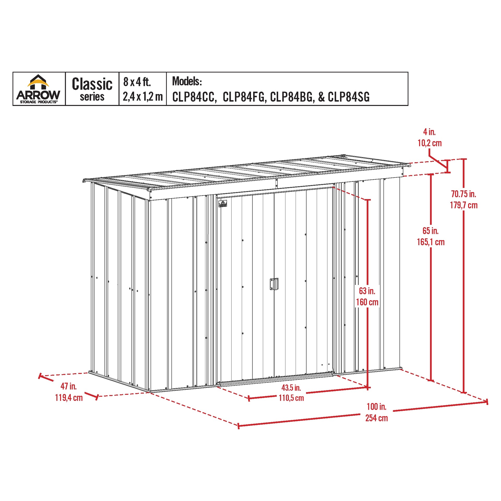 Metal shed 8 x 4 ft Arrow CLP84FG