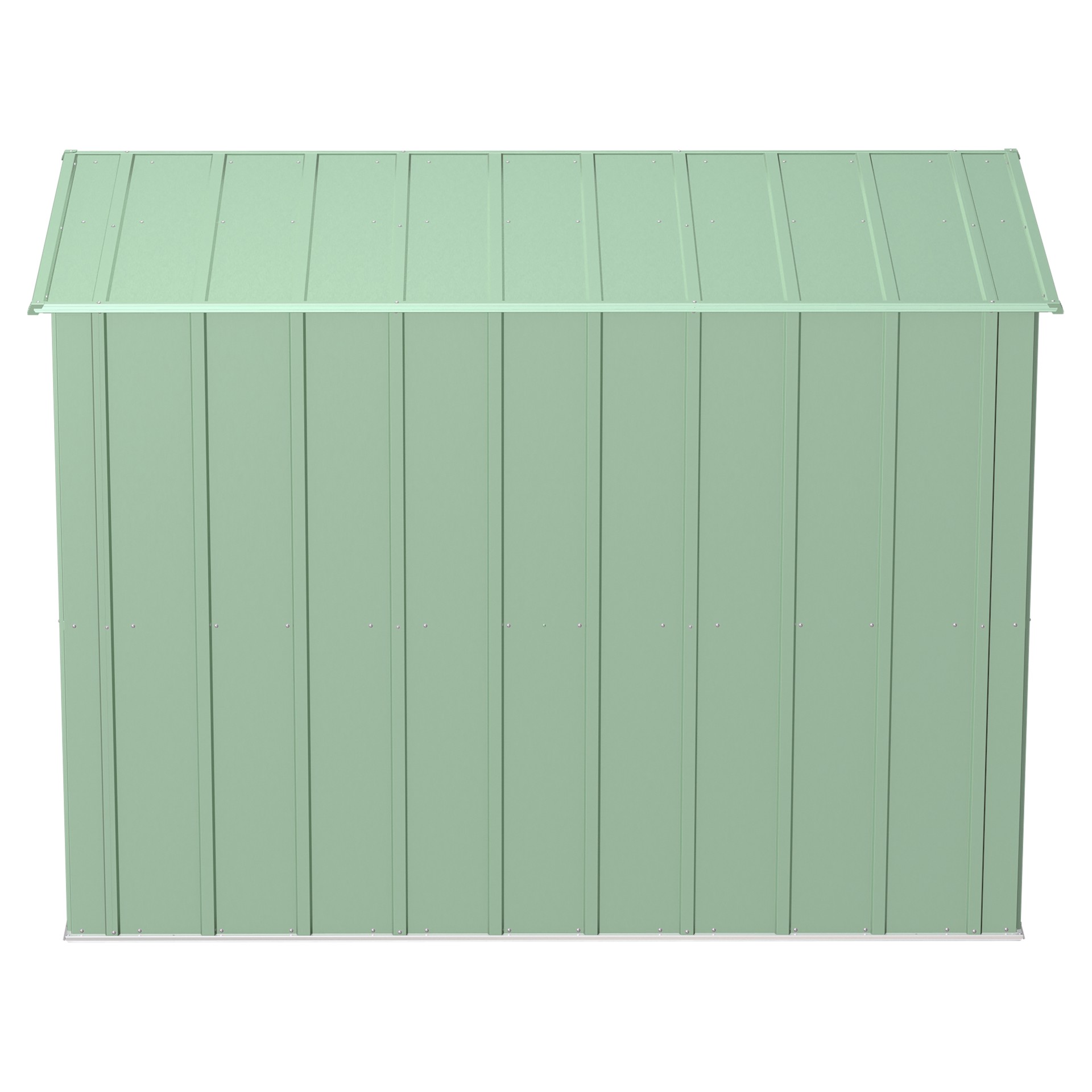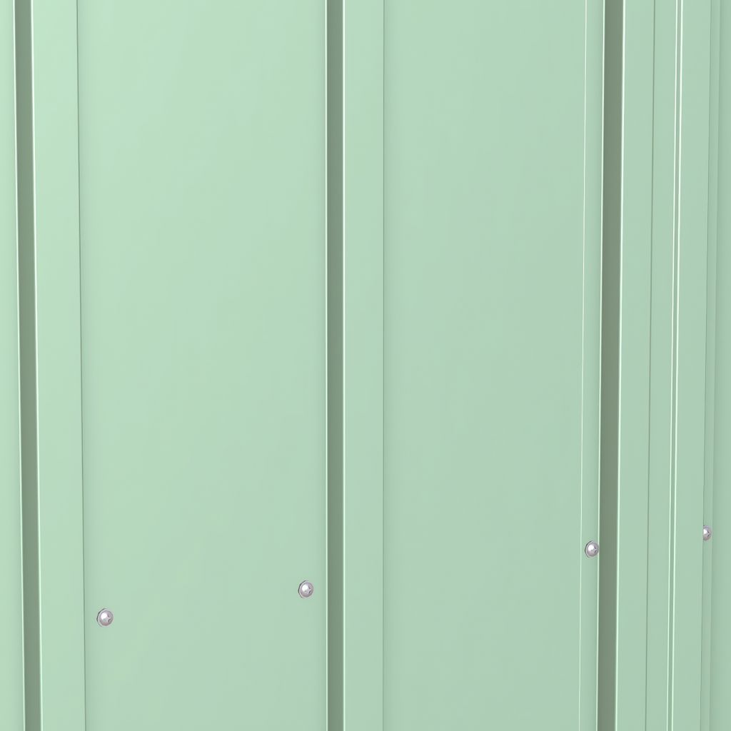 The shed is made of galvanized steel treated to prevent rust and corrosion. Its low gable roof is designed to prevent water from accumulating.