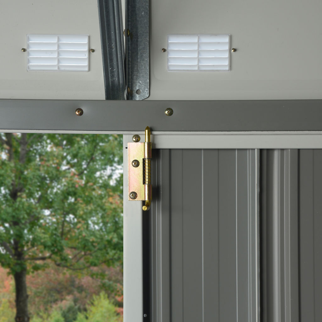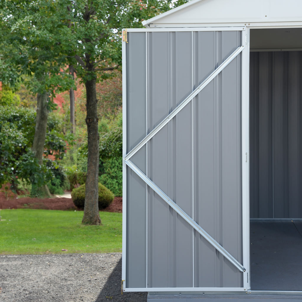 The EZEE shed is a galvanized steel shed that is durable and built to last. It features the revolutionary Snap-IT quick assembly system that reduces the number of parts by 50% compared to most steel sheds on the market.