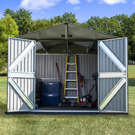 Made from Galvalume, a steel plated with aluminum and zinc for its anti-corrosive properties. This steel shed is built to last!