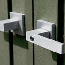 The rigid reinforced swing open doors with brushed metal key lock handle allow for easy access to the interior, while allowing storage against the front wall.