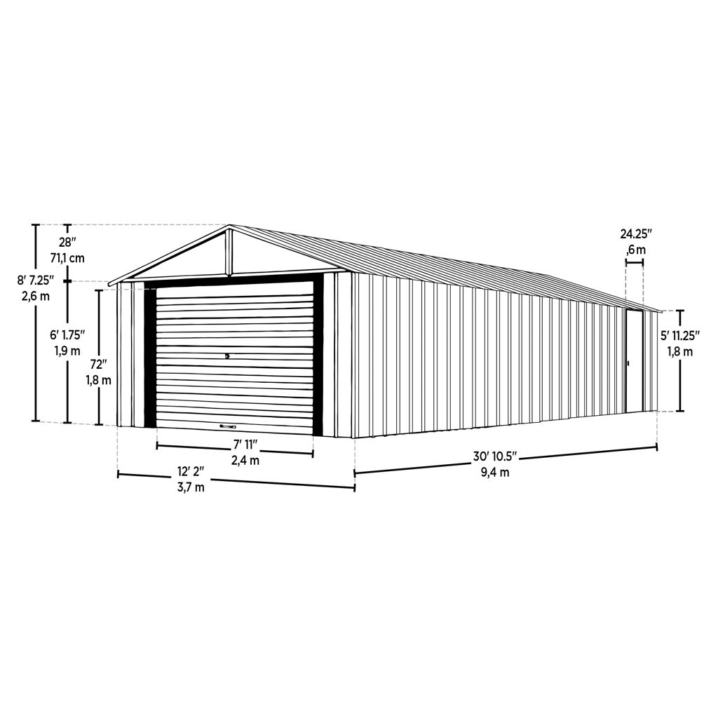 If you're storing large or bulky items like a car, boat or lawn equipment, you'll appreciate the 95" x 72" / m 241.3" x 182.9" roll-up door opening.
