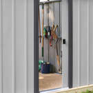 The convenient side entry door measures 24.25" x 71.25" / 61.6" x 181" making it easy to get in and out of the garage to build, tinker and work on projects without having to open the roll-up door.