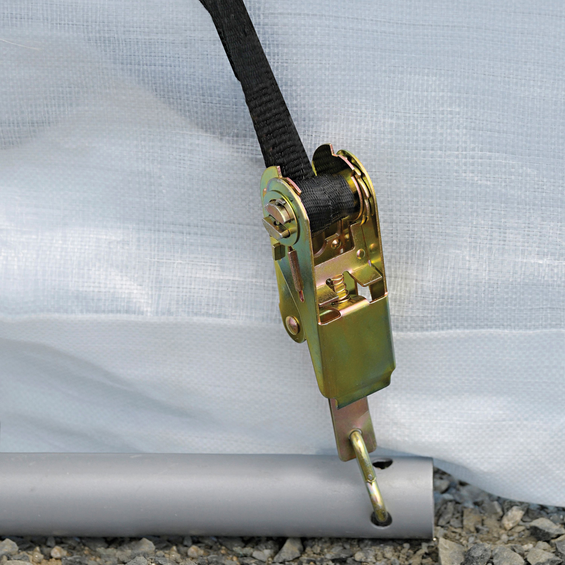 The cover includes clear windows for safety and visibility. 1-3/8 (34mm) diameter steel frame with premium powder coat finish for rust- and corrosion-resistance.