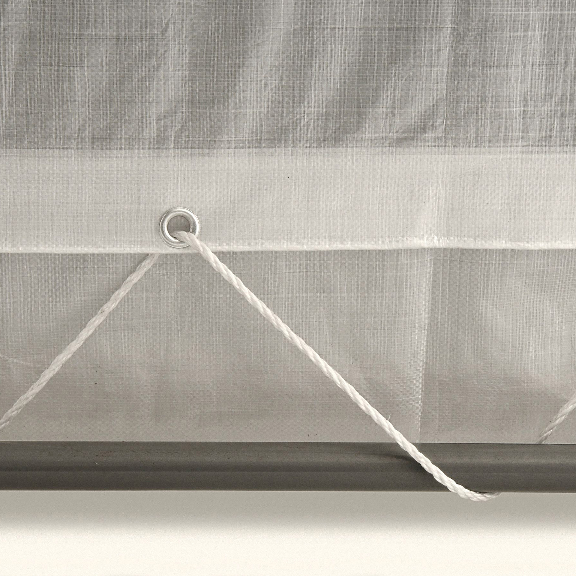 The ShelterLogic MVS 1820 2 Car Garage features a translucent rip-stop 7.5 oz triple layer woven, polyethylene heat-sealed fabric cover.