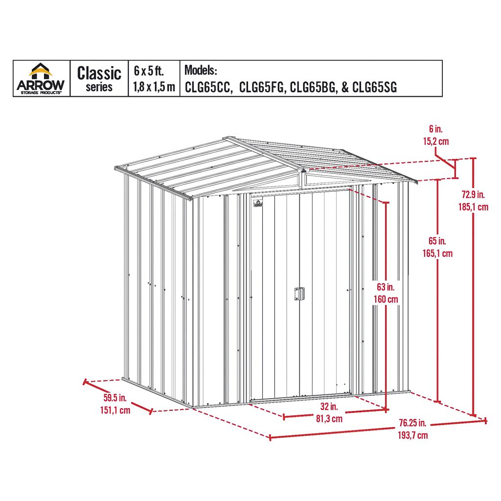 Metal shed 6 x 5 ft Arrow CLG65FG