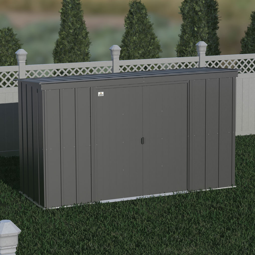 The Arrow Classic is also a beautiful unit. The shed's timeless vertical wall panels are finished with a smooth, durable Valspar polyester paint that protects against the elements and seals the steel against rust and corrosion.