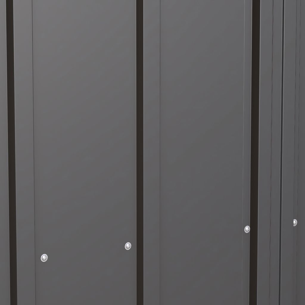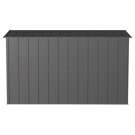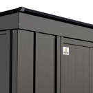The shed is made of galvanized steel treated to prevent rust and corrosion. Its low gable roof is designed to prevent water from accumulating.