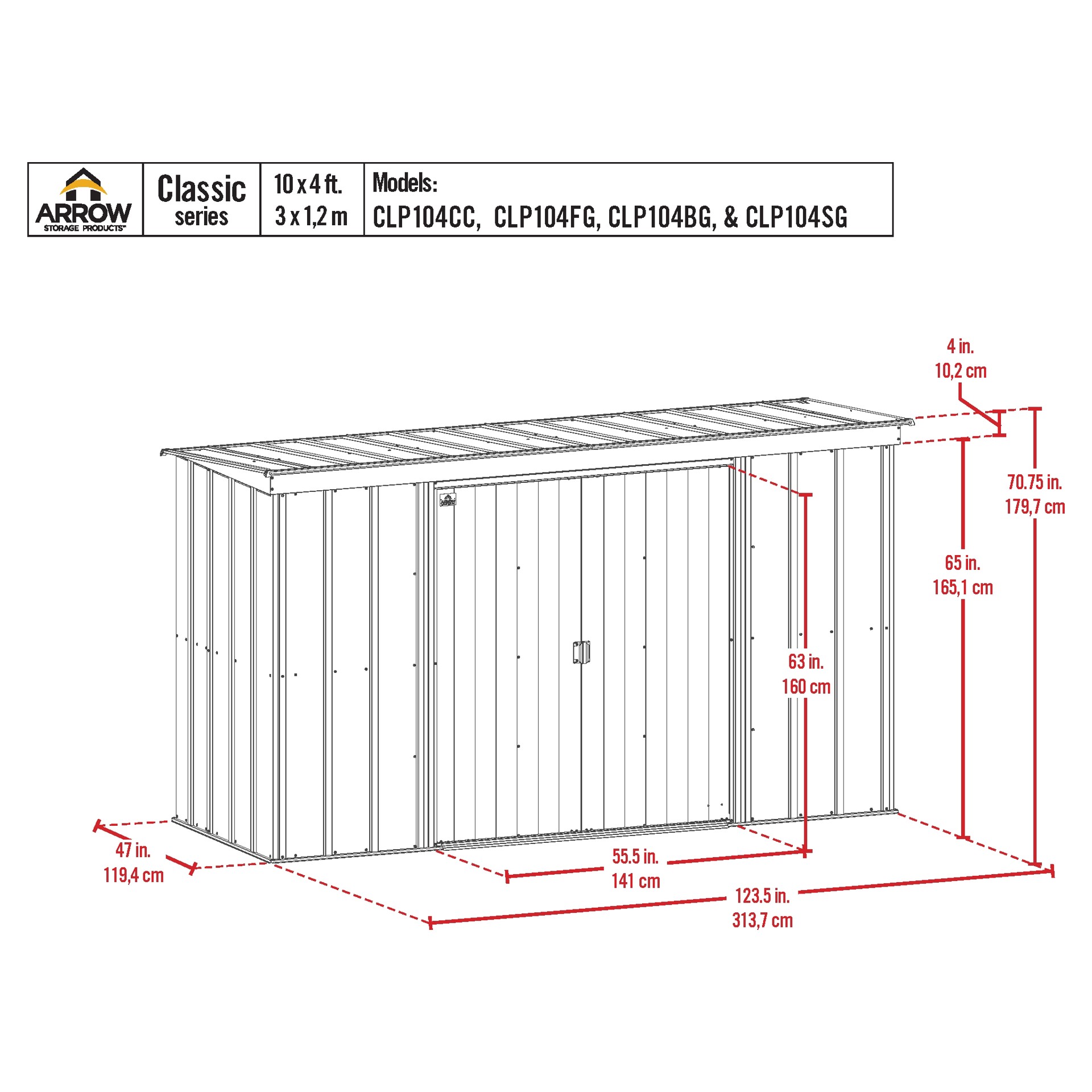 Metal shed 10 x 4 ft Arrow CLP104CC