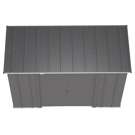 The shed is made of galvanized steel treated to prevent rust and corrosion. Its low gable roof is designed to prevent water from accumulating.