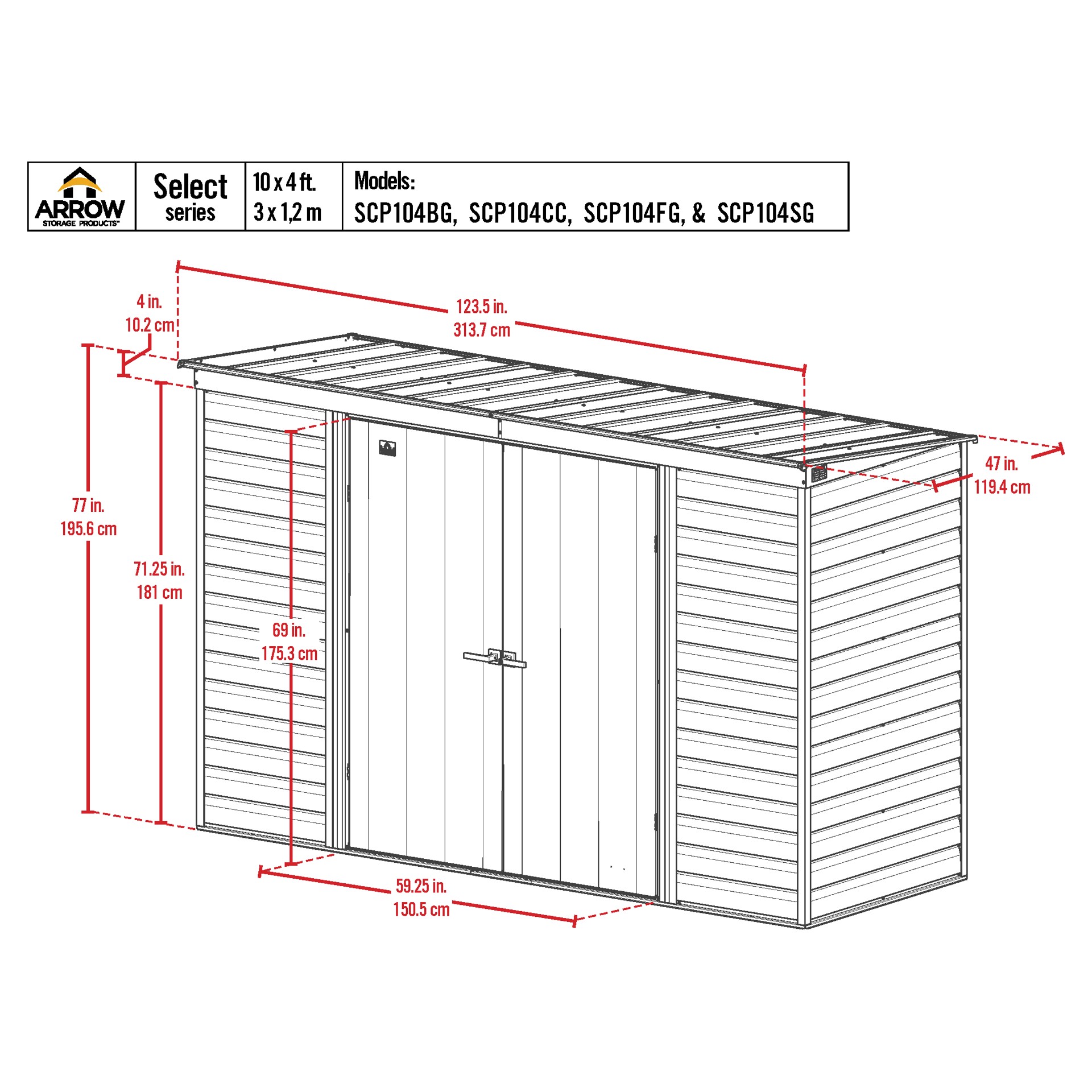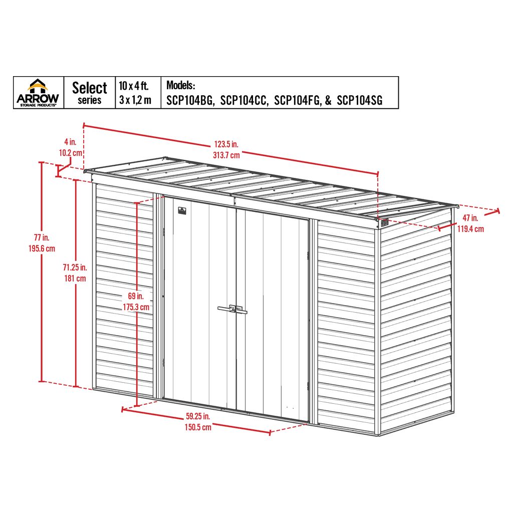 Metal shed 10 x 4 ft Arrow SCP104BG