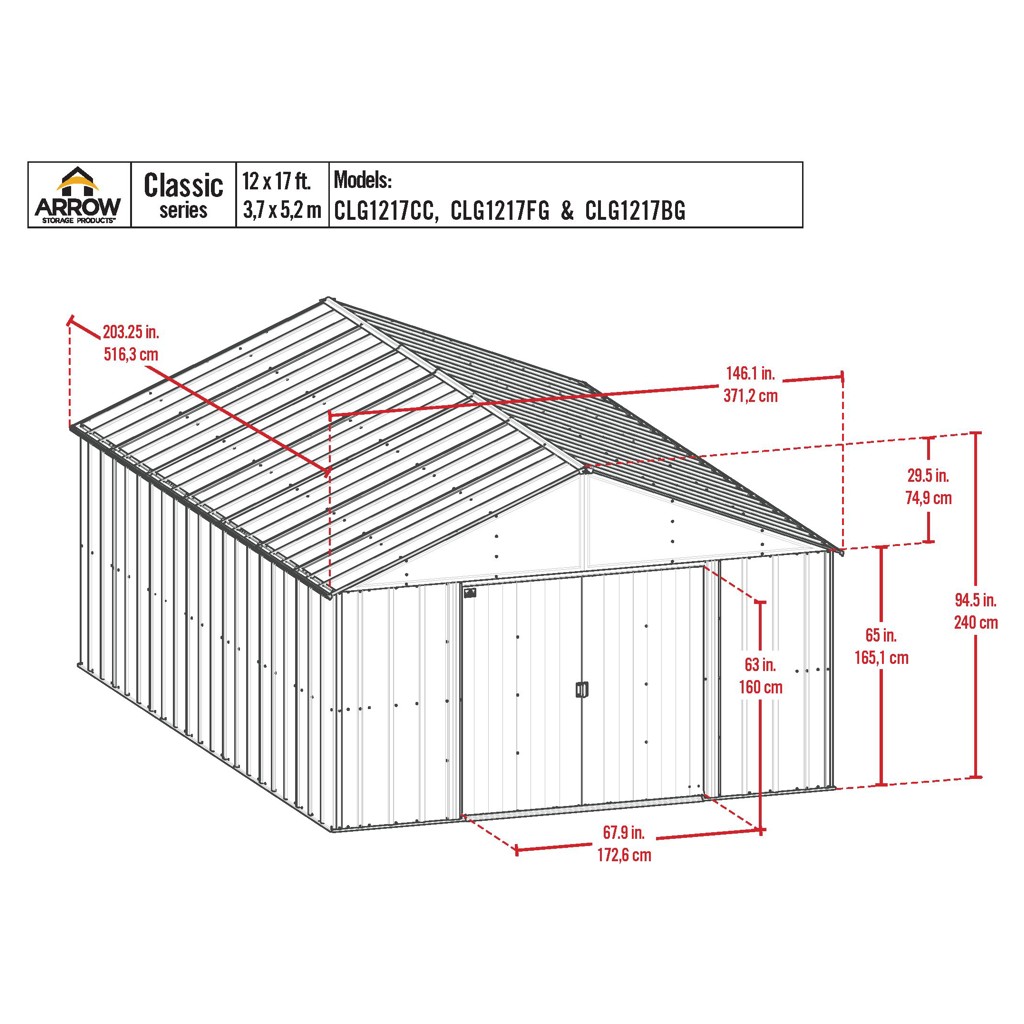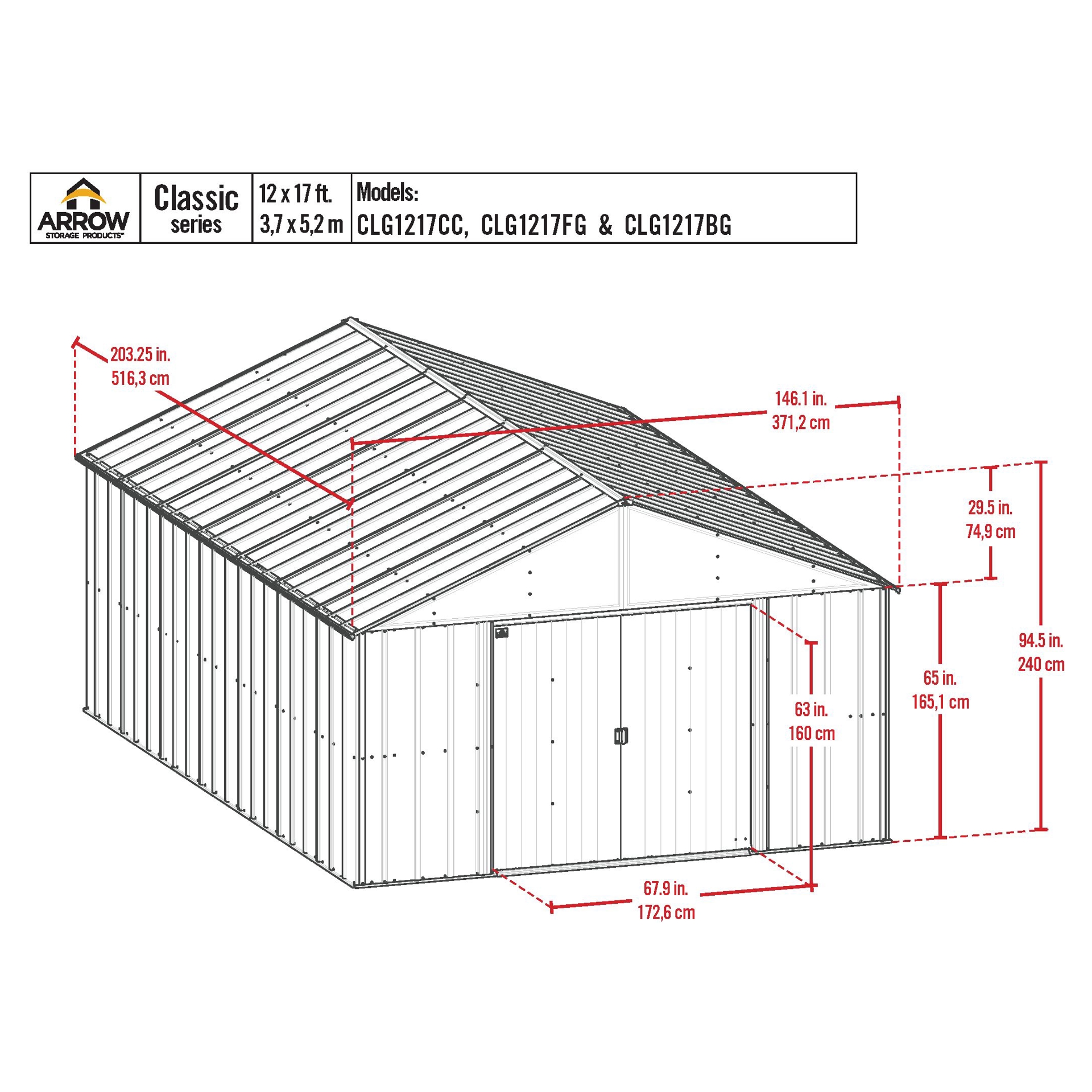 Arrow Classic Shed 12' X 17' - Charcoal Arrow CLG1217CC
