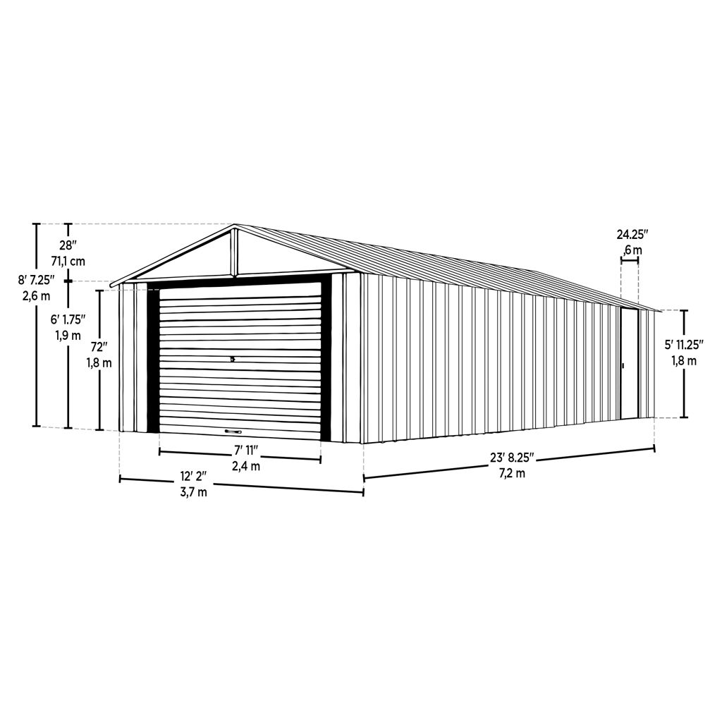 If you're storing large or bulky items like a car, boat or lawn equipment, you'll appreciate the 95" x 72" / 241.3" x 182.9" roll-up door opening.