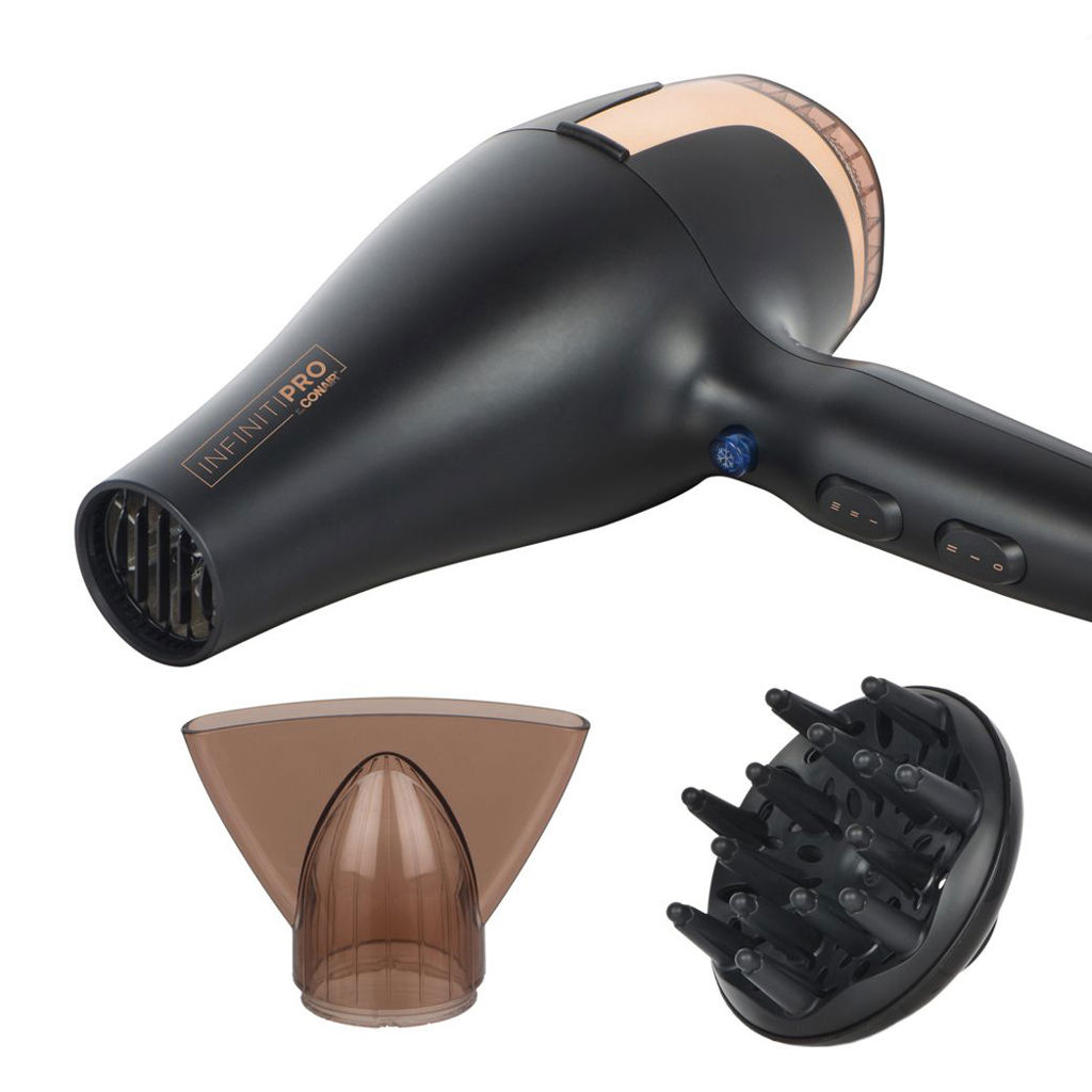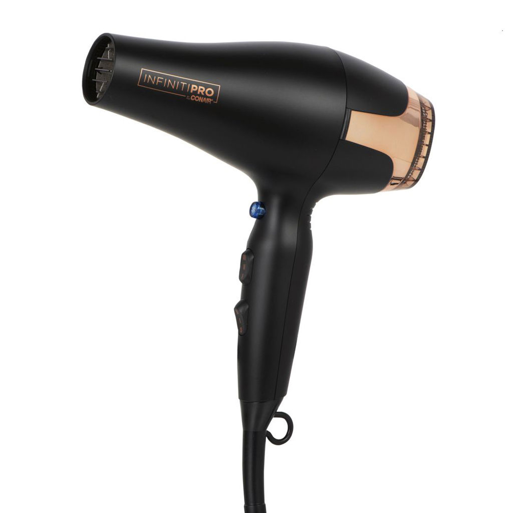 This tourmaline and ceramic hair dryer produces far infrared heat and negative ions to dramatically reduce drying time, and eliminate frizz and flyaways. With its pink-gold accents, this beautiful hair dryer is a must-have!