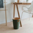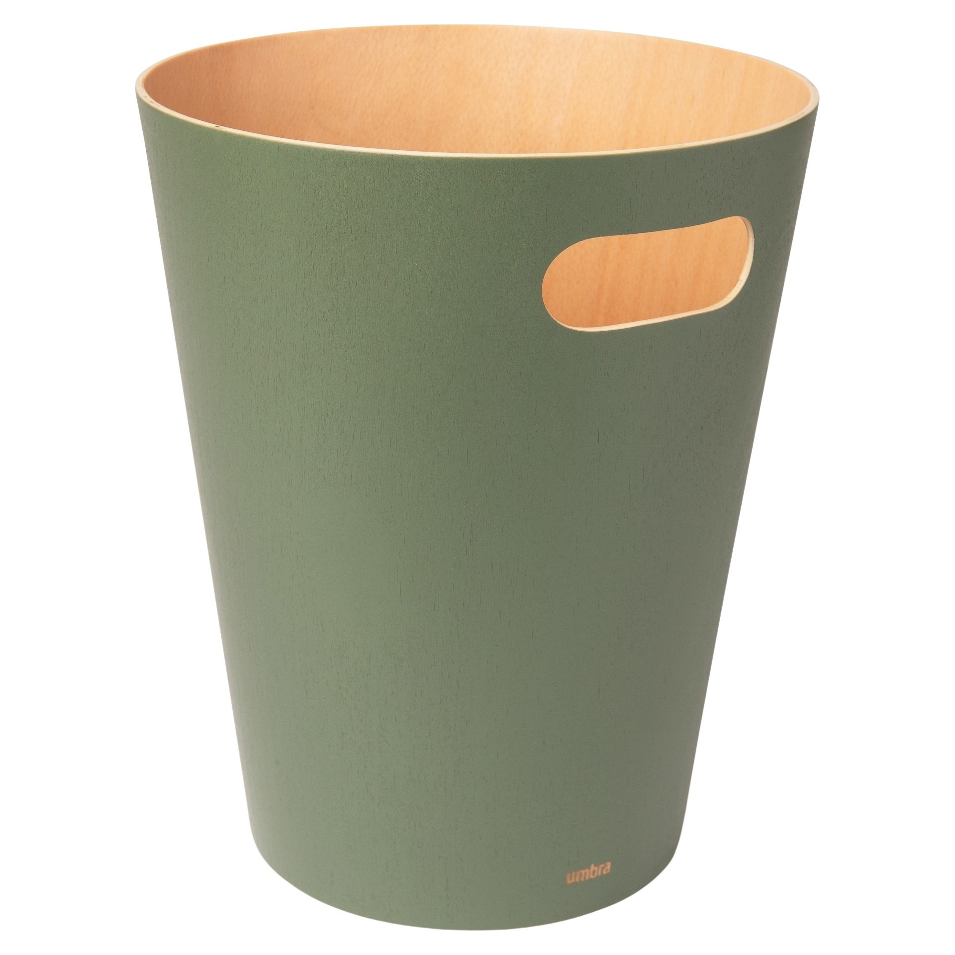 Unlike plastic trash cans, the Woodrow trash can is made of real wood that has been bent into a modern trash can shape. It features a natural wood interior and is available in a wide range of colors. Woodrow is 28 cm high with a diameter of 23 cm and has a generous capacity of 7.5 L. The integrated handles allow for easy transport and disposal of its contents.
