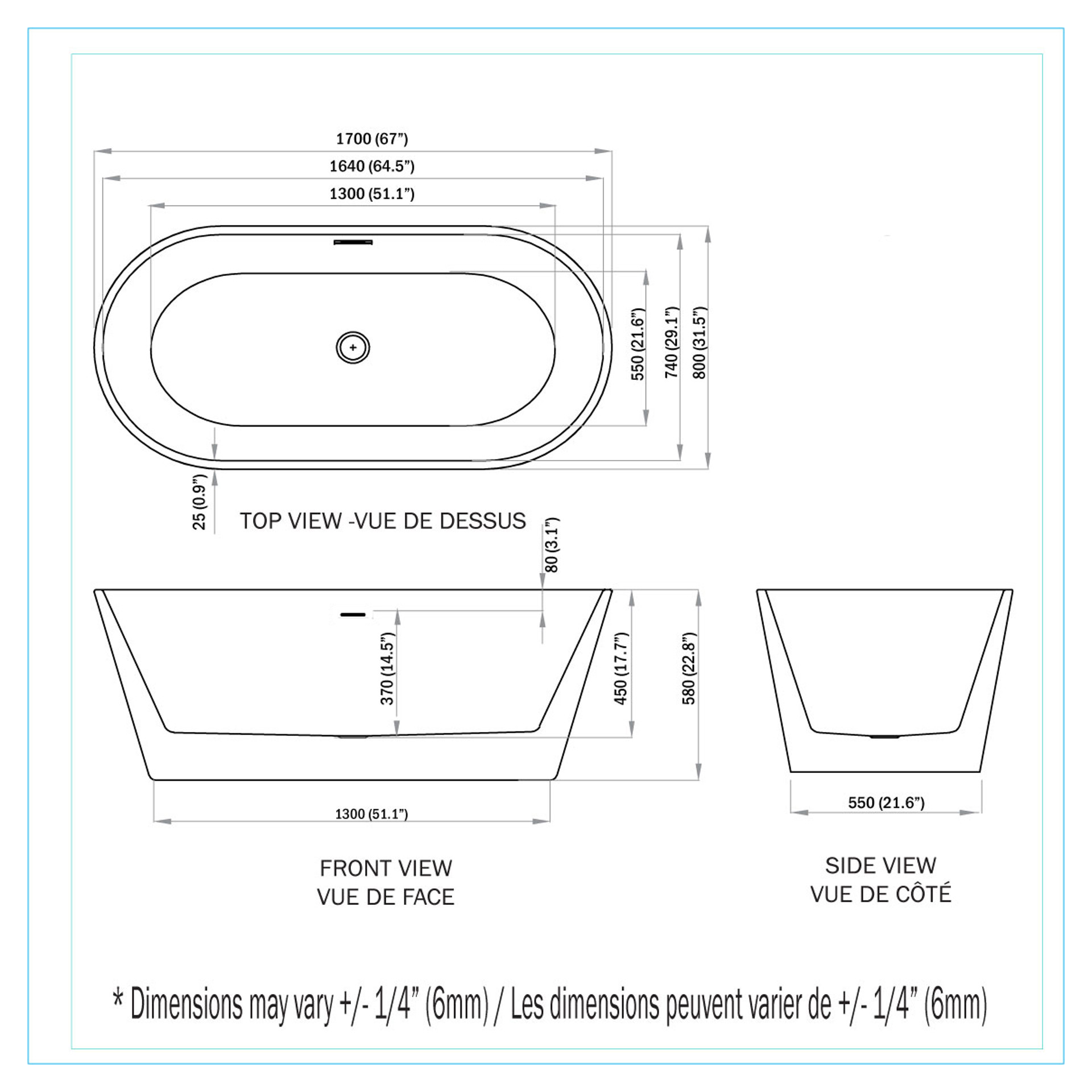 Alba Classic Freestanding Bath 67" Bain A&E ALBA-67