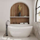Upgrade your bathroom's aesthetic appeal with the exquisite Mahaba freestanding bathtub and the stylish Linosa floor mounted faucet, bringing you peace of mind and enhancing your bathing sanctuary.