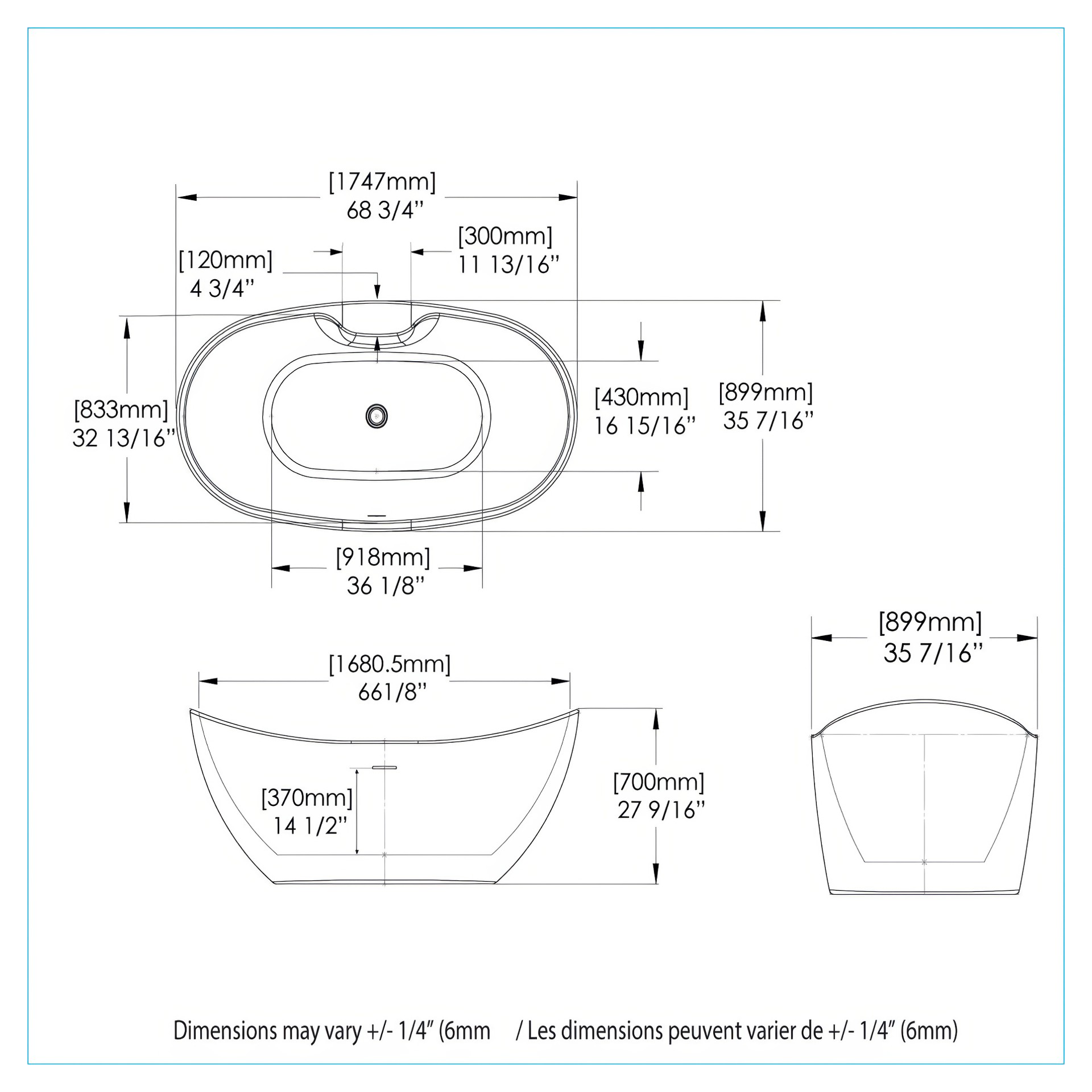 Stacy Freestanding Bathtub 69" Bain A&E BT-1032-BLK