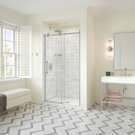 The Odyssey shower door gives a modern and refined look to any bathroom with its fluid movement and elegant finishes such as brushed gold, chrome, brushed nickel and matte black.