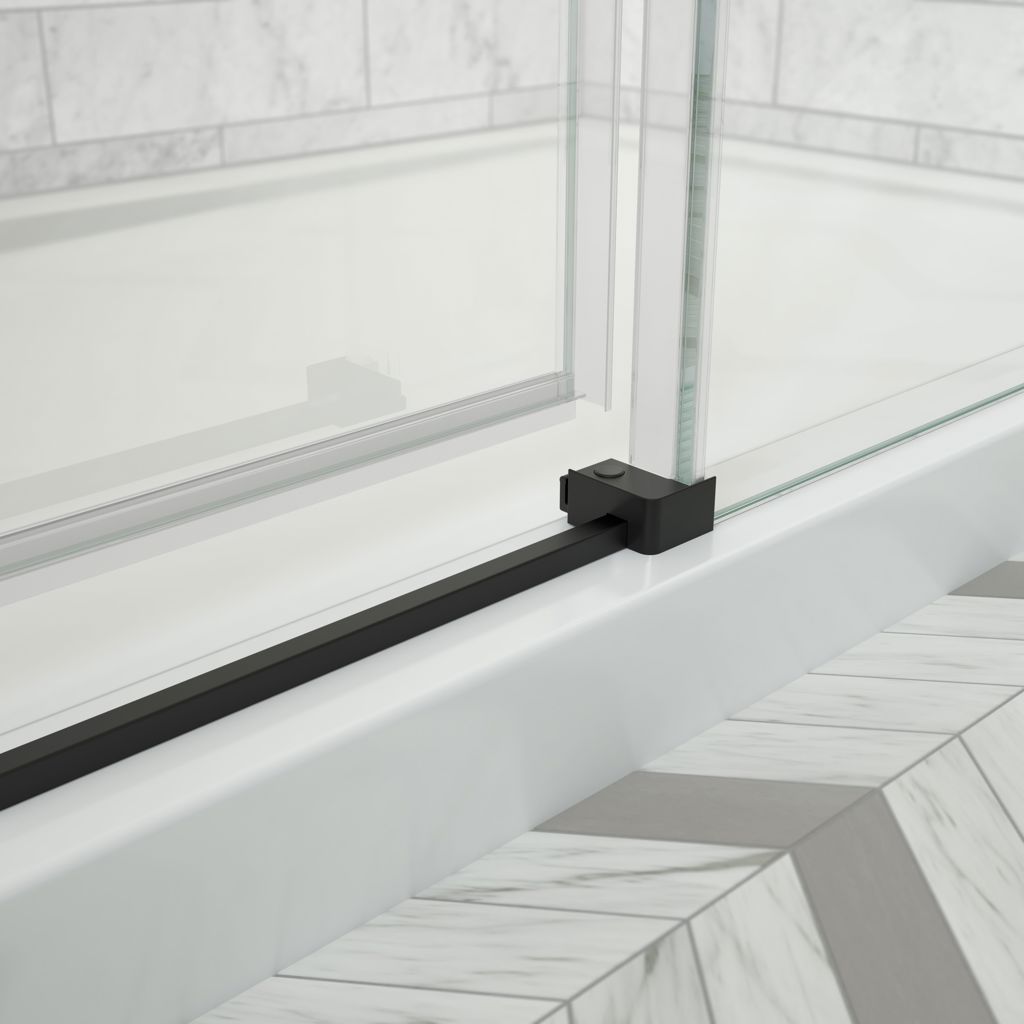 Available in 60-inch and 48 -inch shower doors, either for an alcove by itself, or for a corner installation with a return panel.