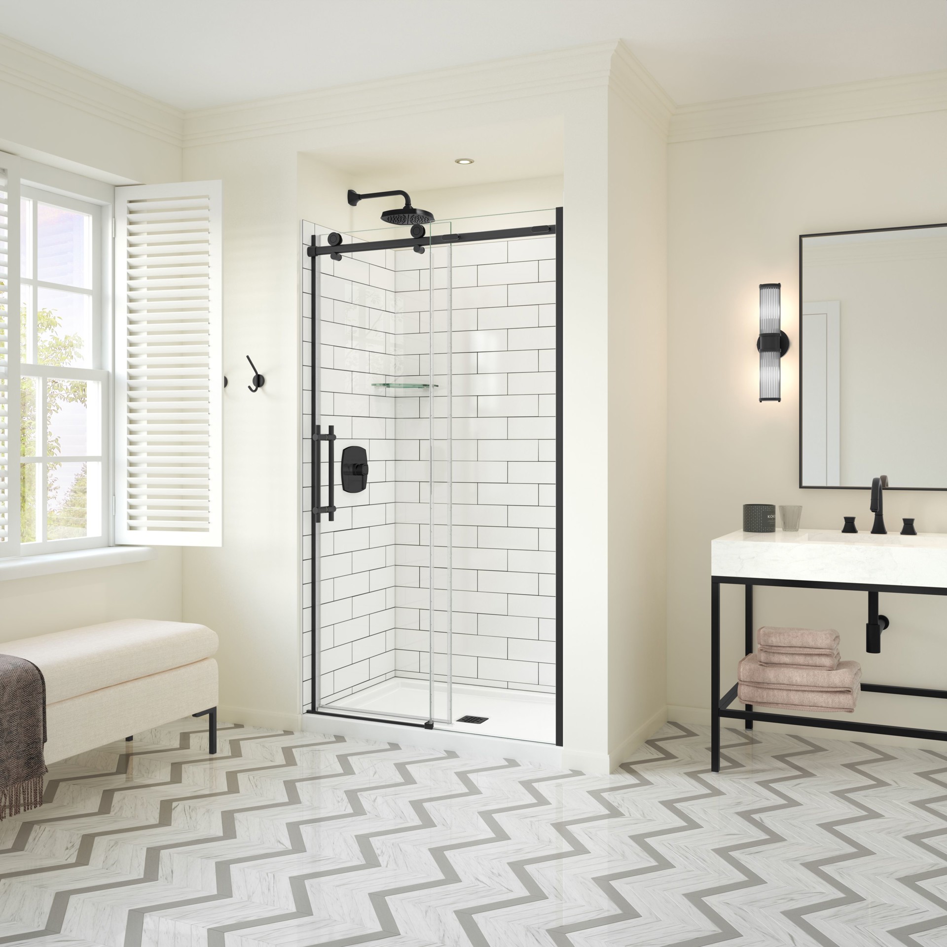 Designed around a desire to increase your comfort and safety, this reversible shower door is equipped with a double-sided handle and innovative double Soft Close technology.