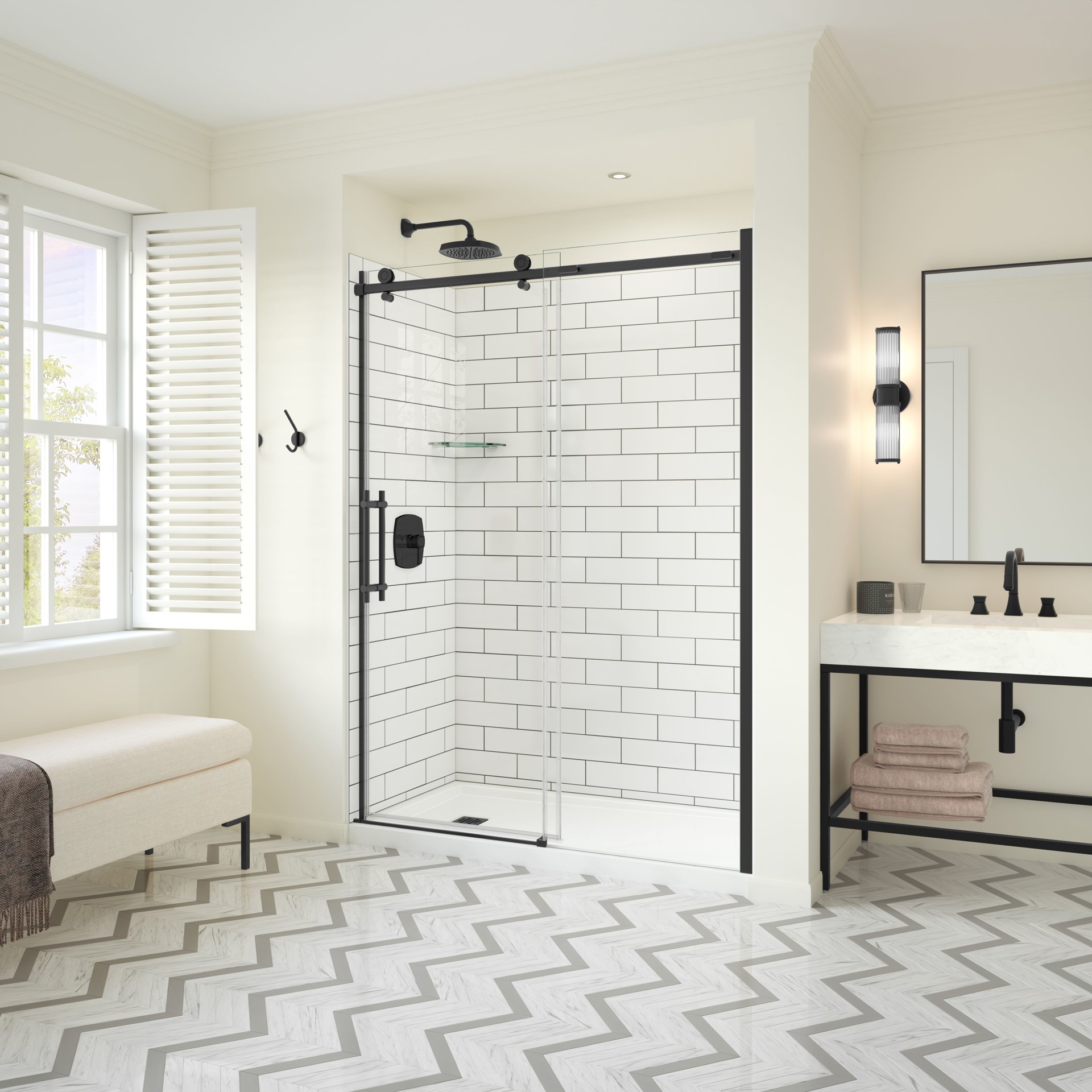 Designed around a desire to increase your comfort and safety, this reversible shower door is equipped with a double-sided handle and innovative double Soft Close technology.