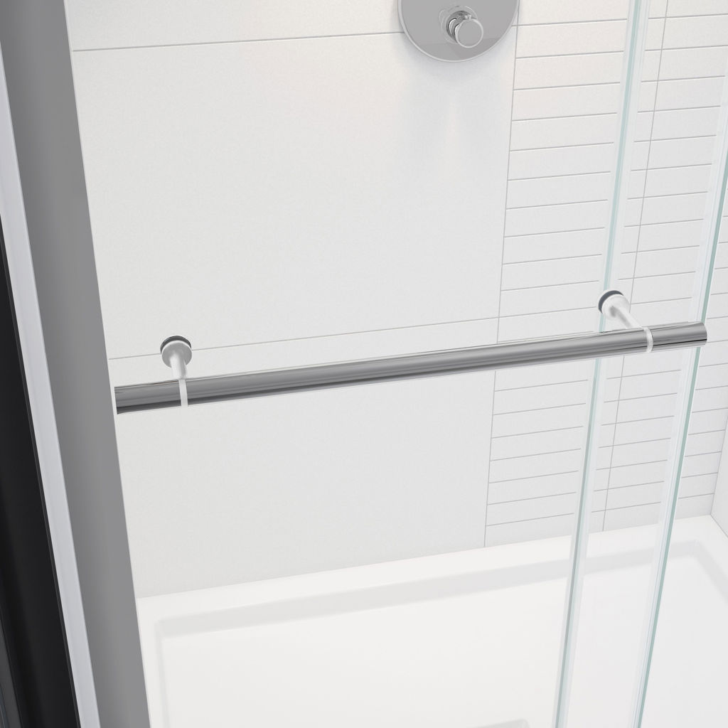 A stainless-steel rail system, a waterproof magnetic closing, and a 15-inch sleek and comfortable handle always ensure tip-of-the-finger ease. It features 8 mm tempered glass, and 78-3/4-inch-high panels with the Lotus Easy Clean Glass Protection to repel soap and water stains for easy maintenance.