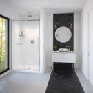 This door also offers a 1/4-inch vertical adjustment, ideal for out-of-plumb walls. You can transform this door into a corner door with a return panel (sold separately). The Vela shower door is available in 4 finishes to match seamlessly with your décor.