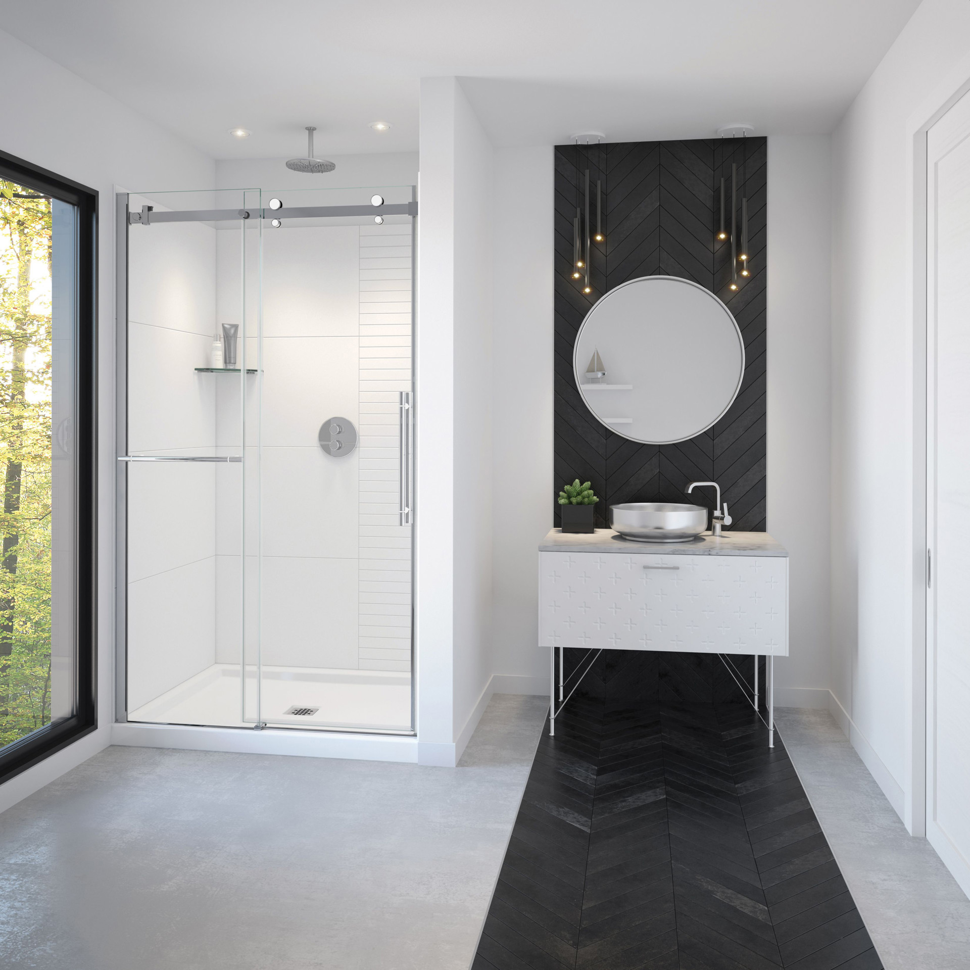Renovate your bathroom with style and accentuate your decor with the MAAX Vela sliding shower door. The Vela is a glass door that slides smoothly and silently along MAAX's award-winning ball-bearing technology.
