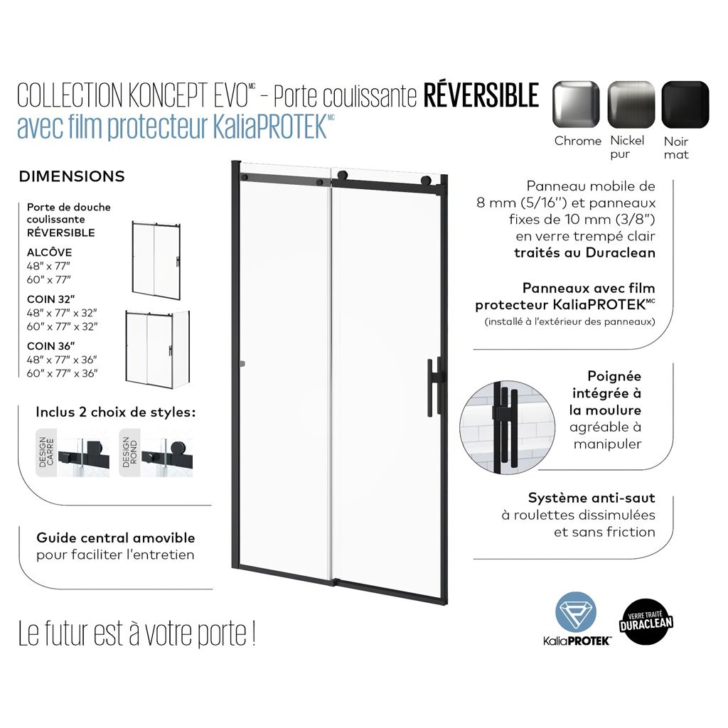 Koncept Evo Sliding Shower Door with KaliaProtek™ film 60 x 77 in. - chrome