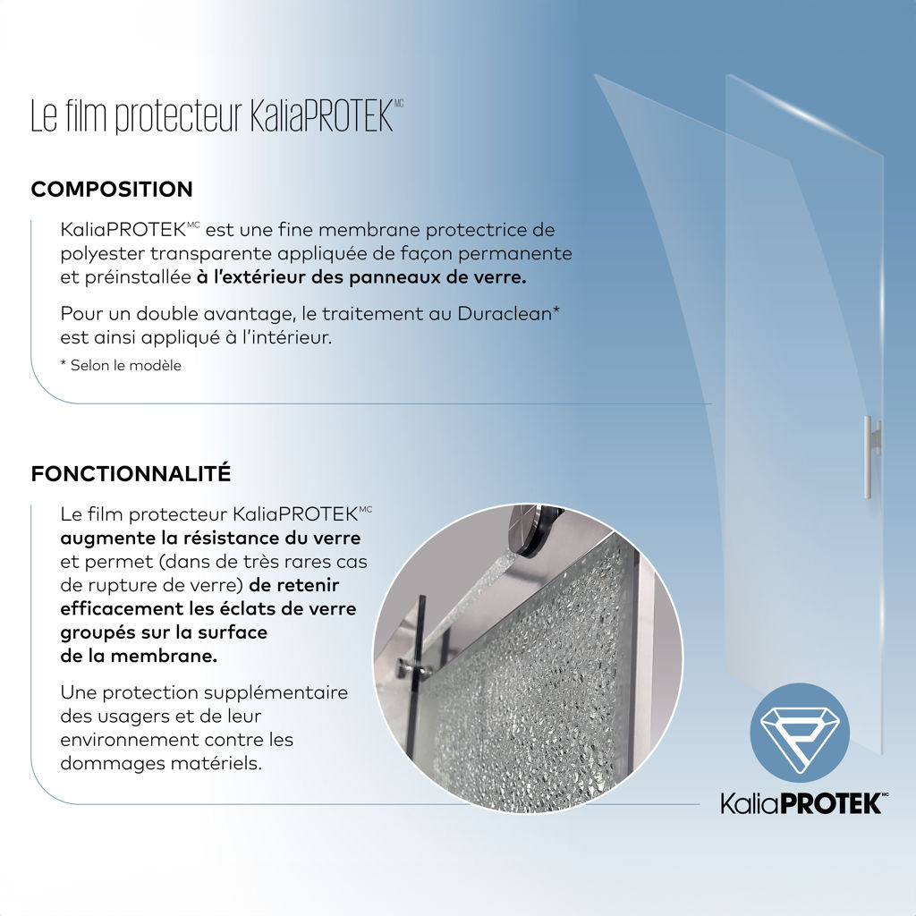 Its fixed panels are made of 10 mm tempered glass and feature a protective film for added stability and protection for users and their environment.