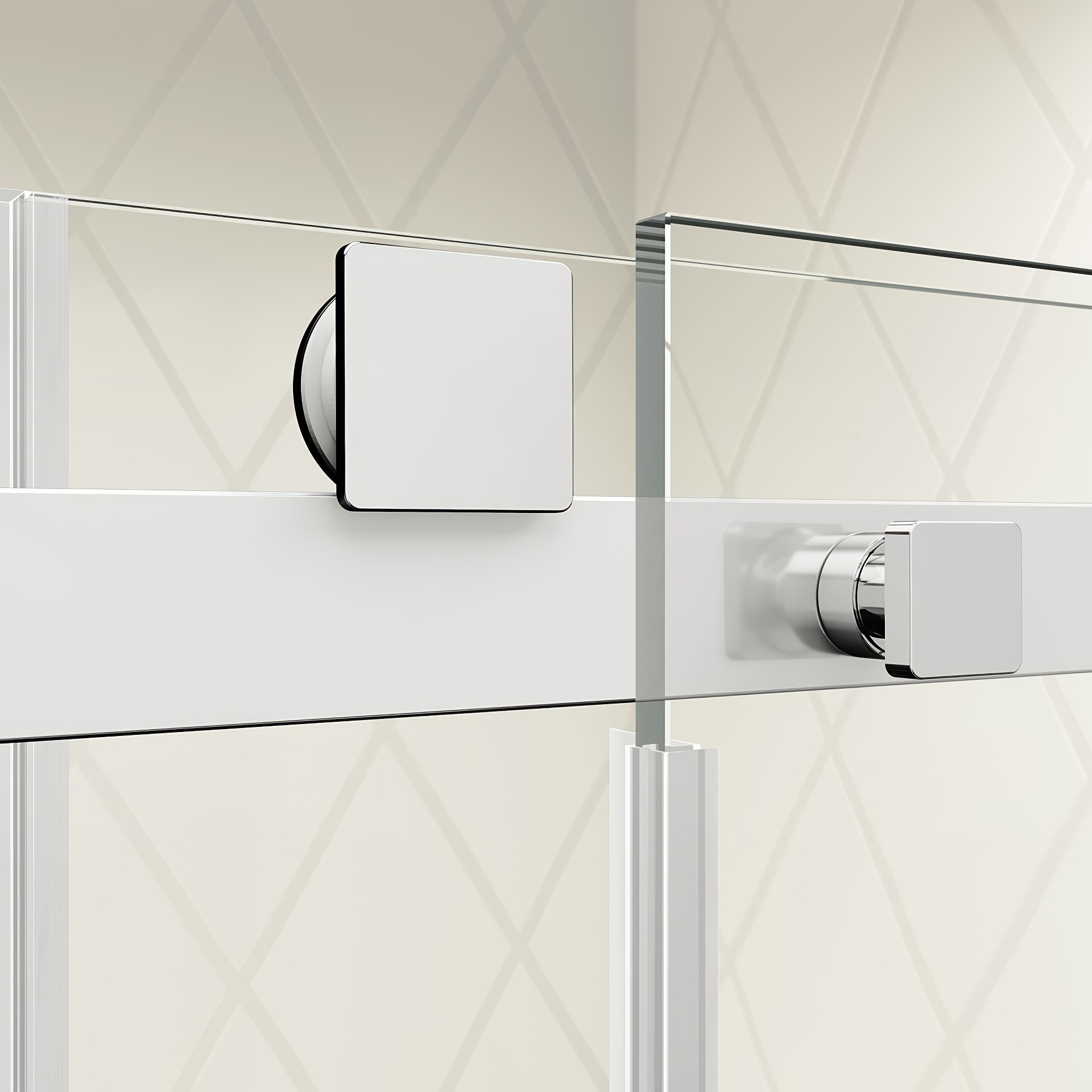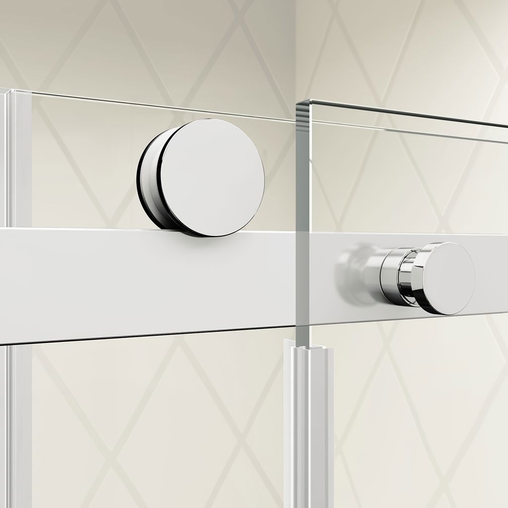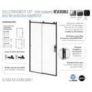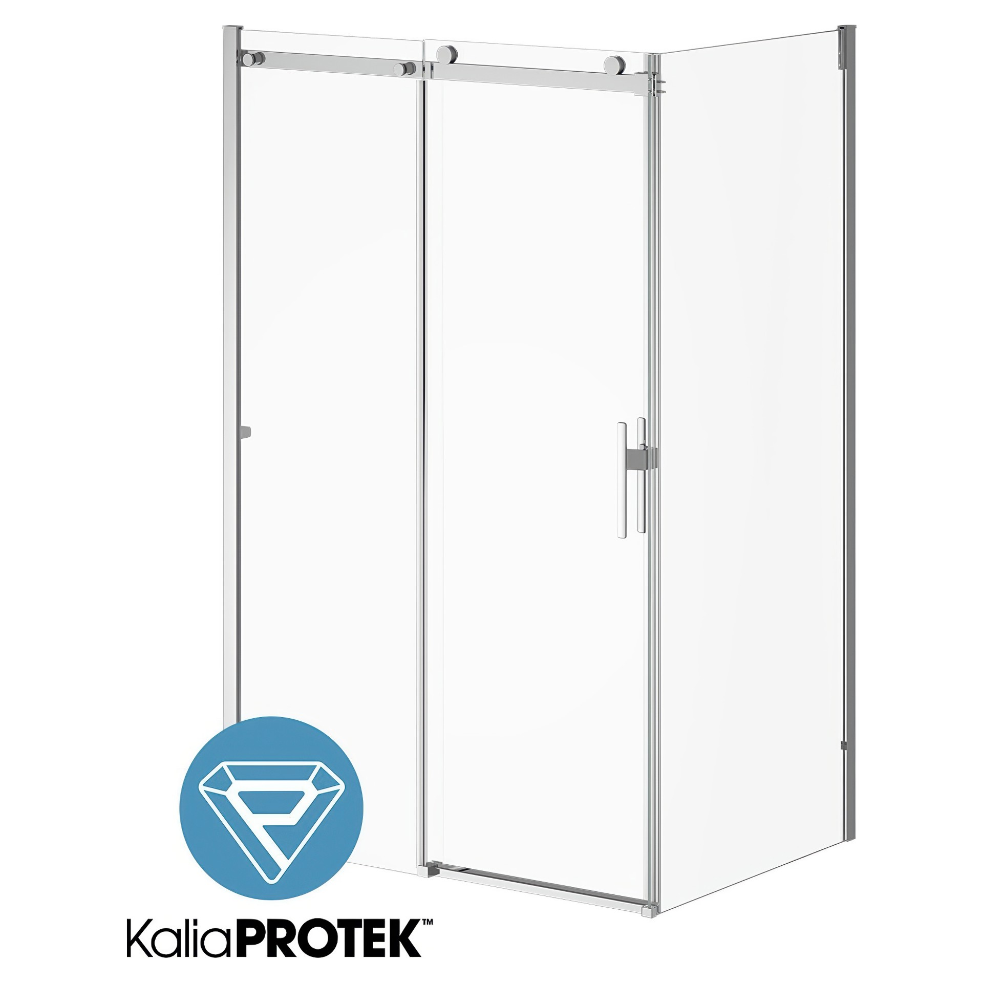 Fixed 10 mm (3/8“) clear tempered glass panel and movable 8 mm (5/16”) clear tempered glass panel with KaliaPROTEK™ protective film.