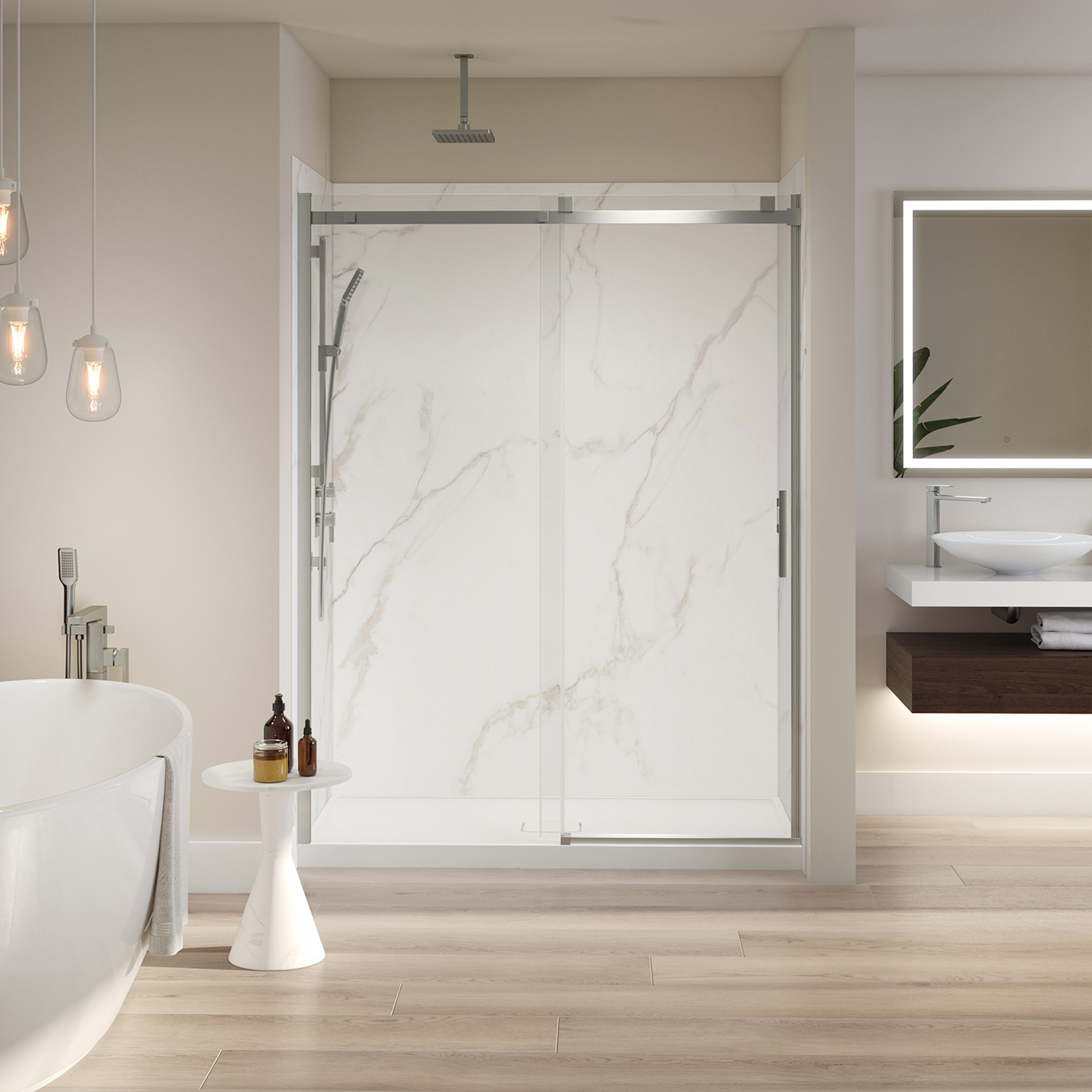 In addition to matching perfectly with the doors and bases of Kalia, Kalia shower wall panels are effortlessly stylish and come in a choice of contemporary and timeless looks including: classic ceramic tile, ultra-modern industrial, and contemporary-chic marble.