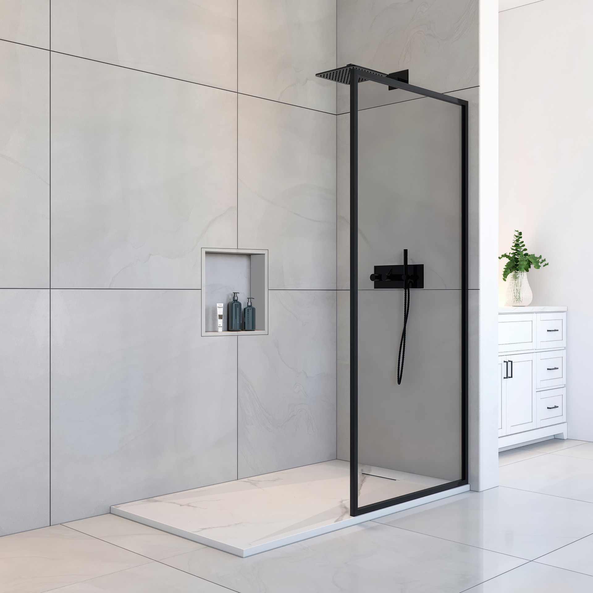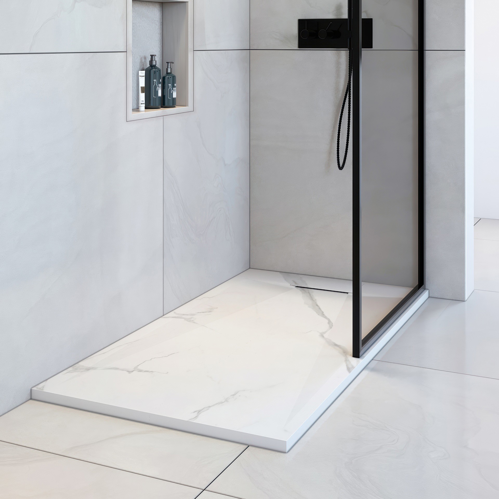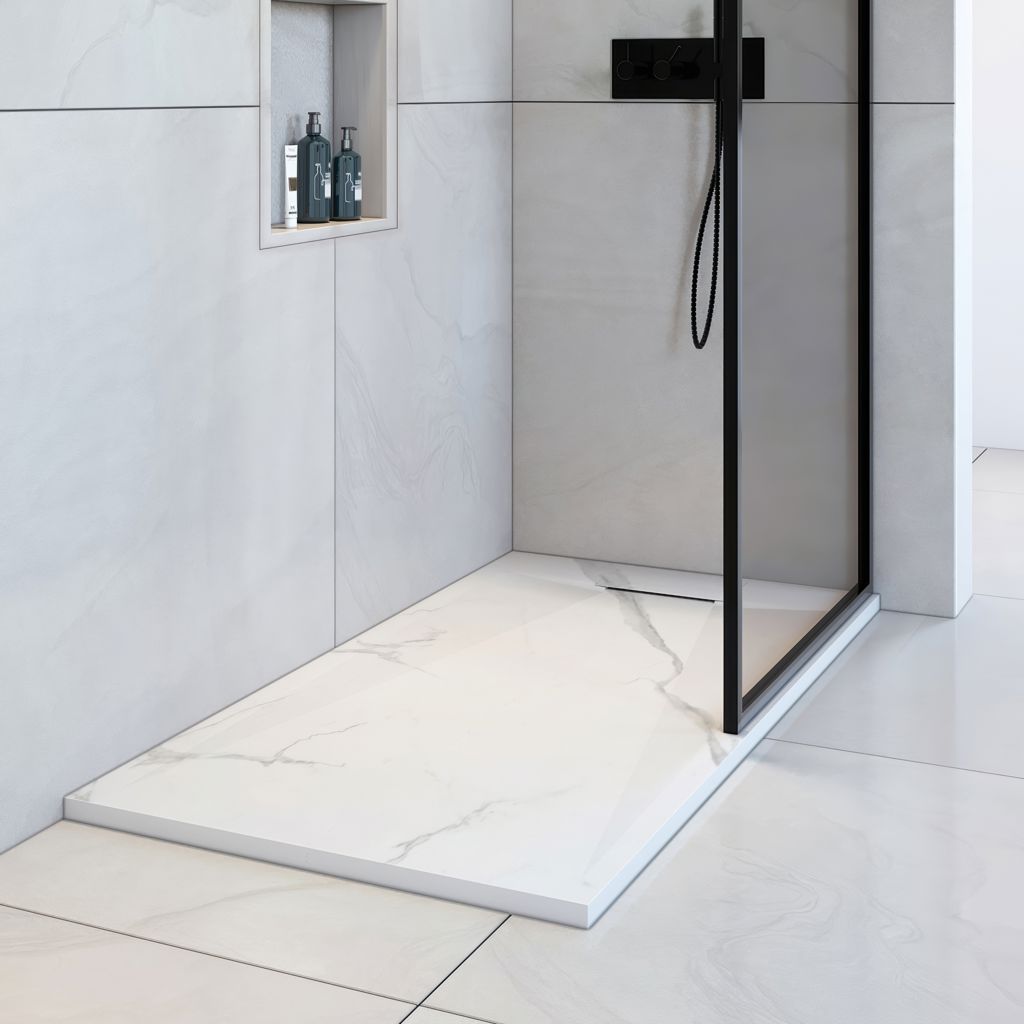 Elevate your bathroom with our white marble SMC Shower Base, designed with a refined stone-like anti-slip texture for both safety and style.