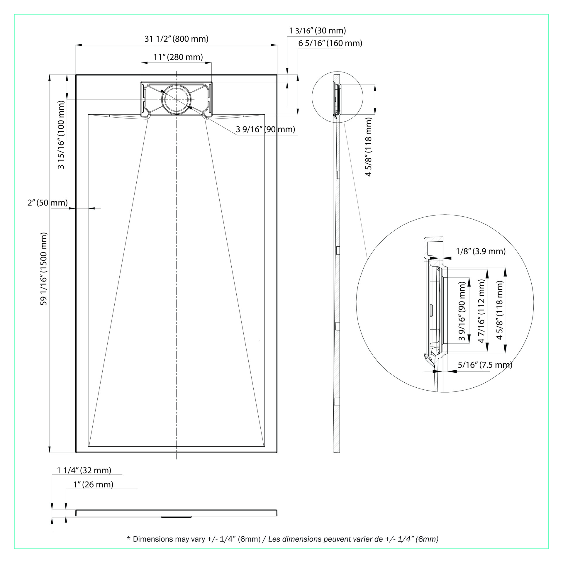 • Shower Base Size : 60x32 in