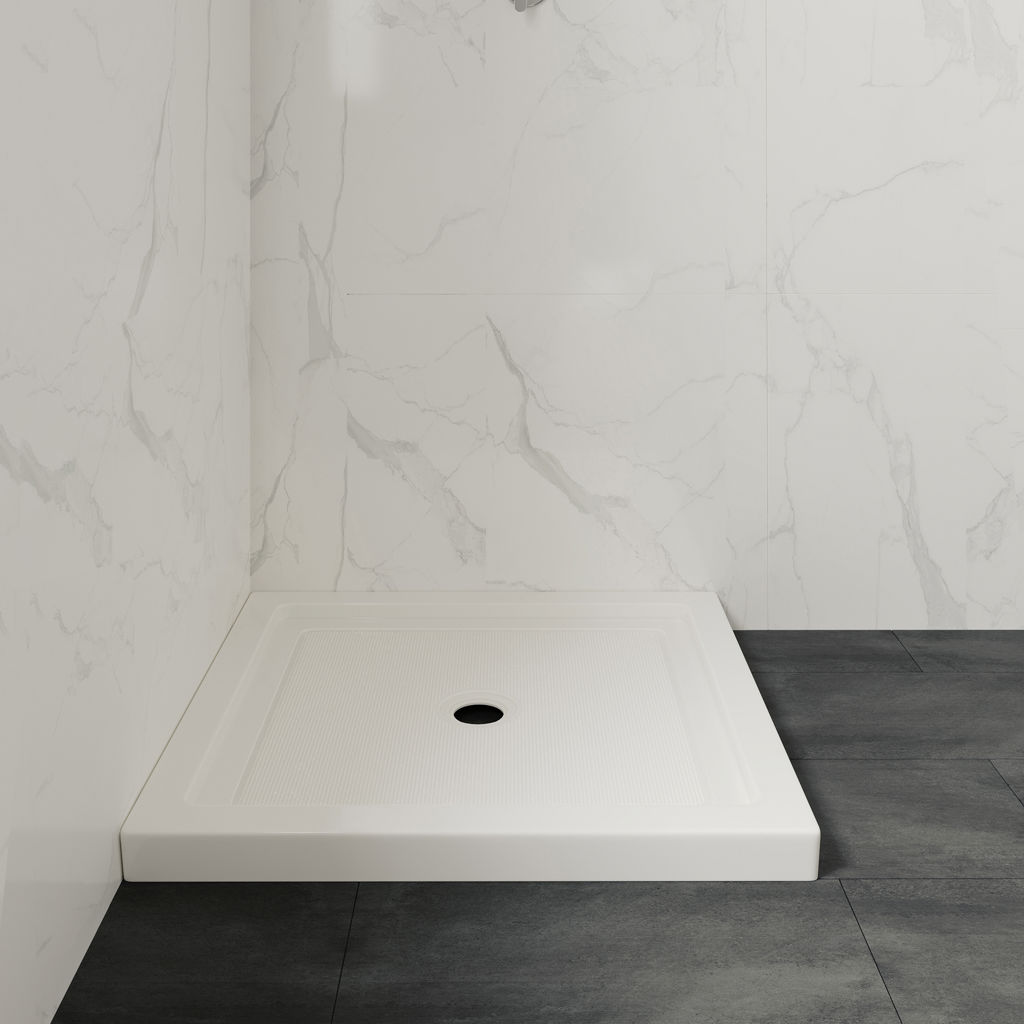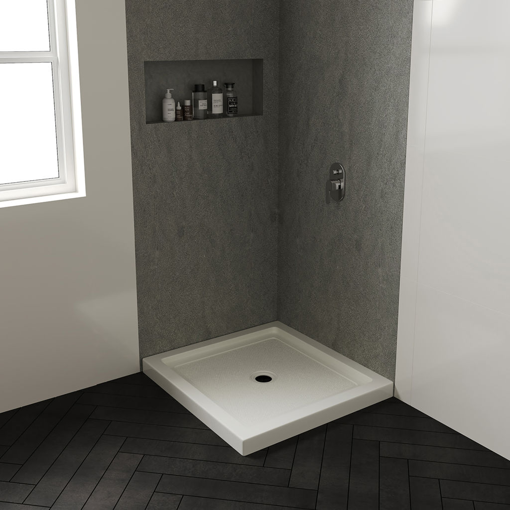 Designed with a center drain and low-profile threshold, this base provides a clean, modern look while ensuring easy accessibility.