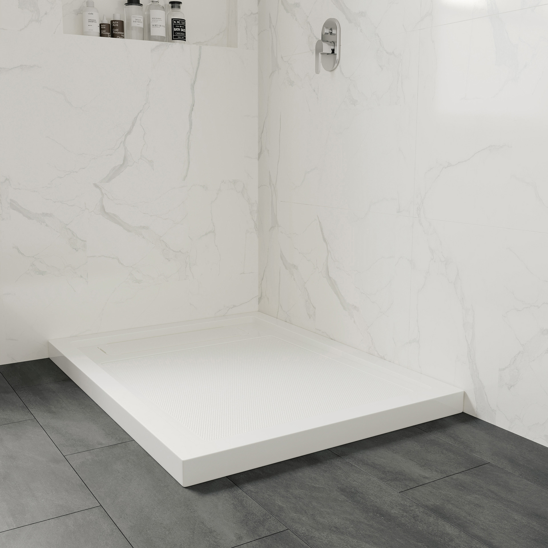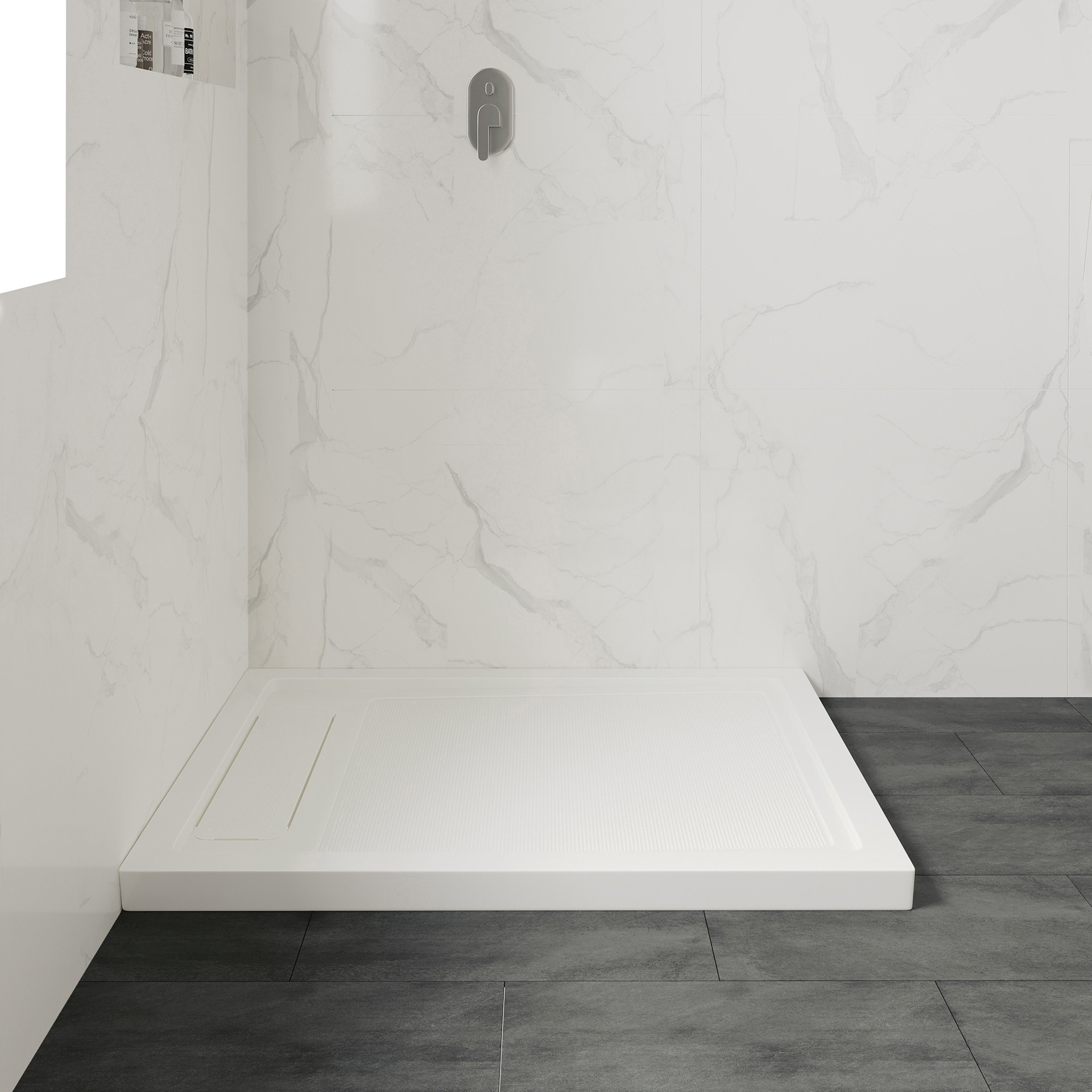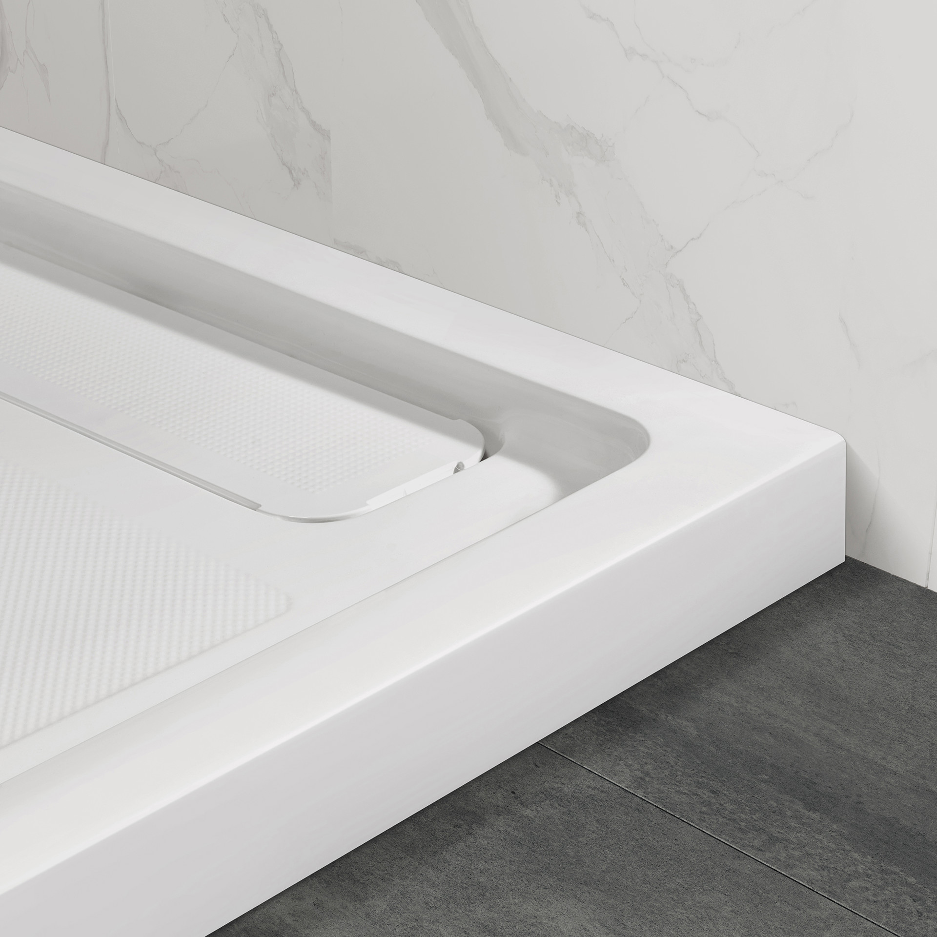 • Sleek, concealed side drain for fast water evacuation