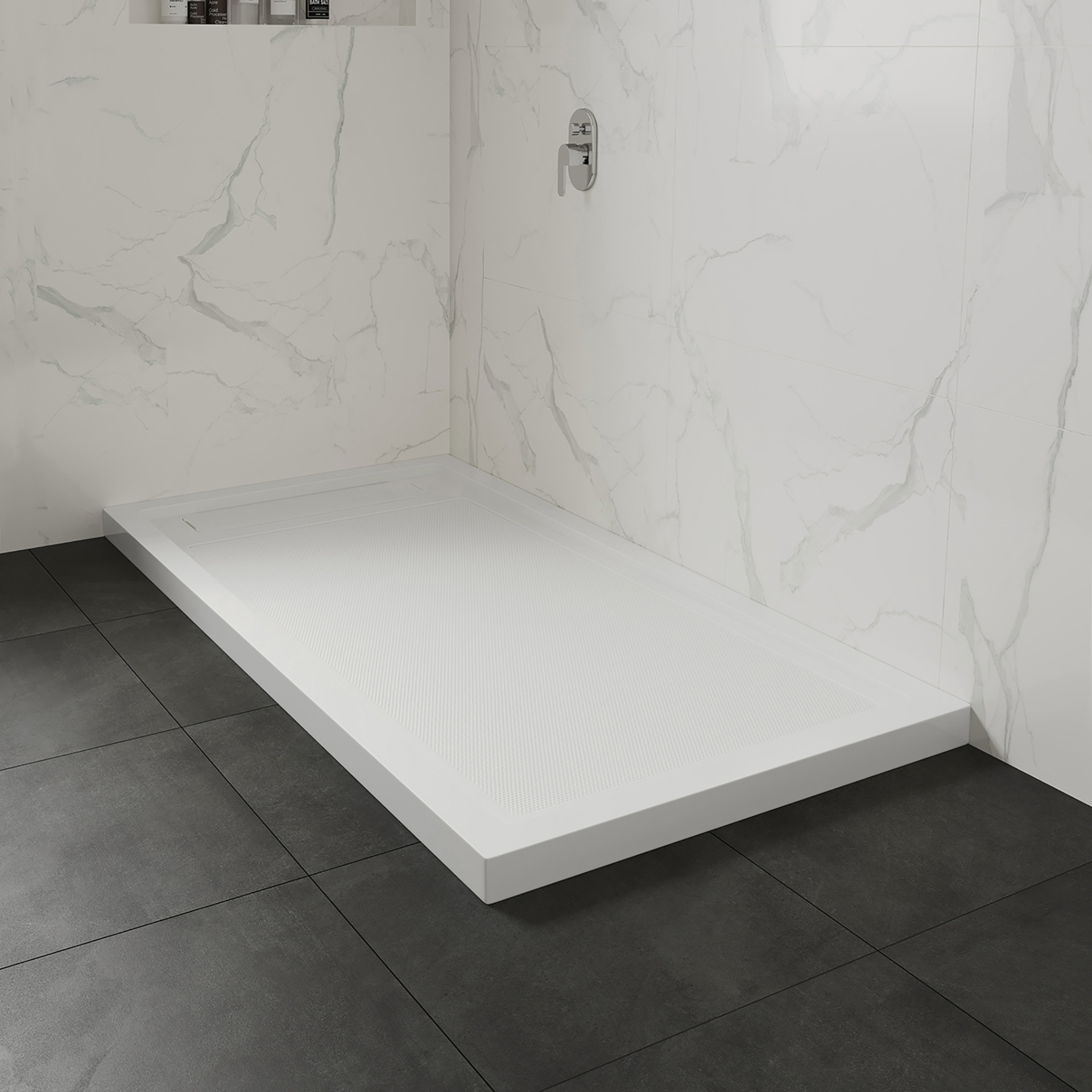 • Compatible with tile, glass panels, or acrylic walls