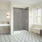 The Odyssey shower door gives a modern and refined look to any bathroom with its fluid movement and elegant finishes such as chrome, brushed nickel and matte black.