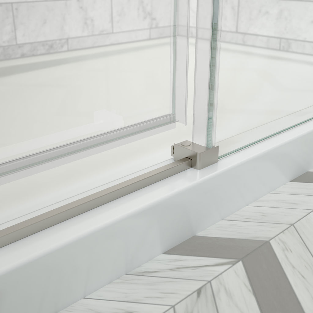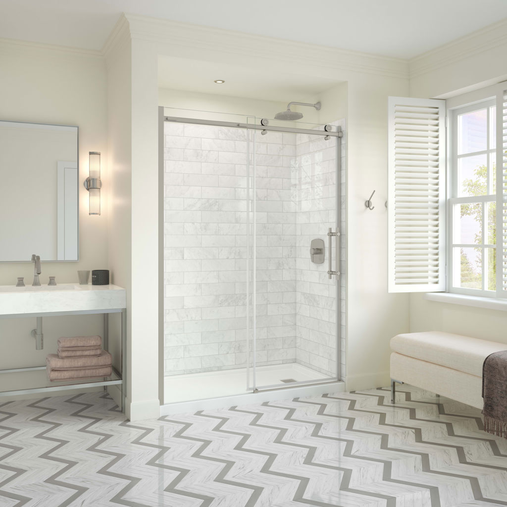 The Odyssey shower door gives a modern and refined look to any bathroom with its fluid movement and elegant finishes such as chrome, brushed nickel and matte black.