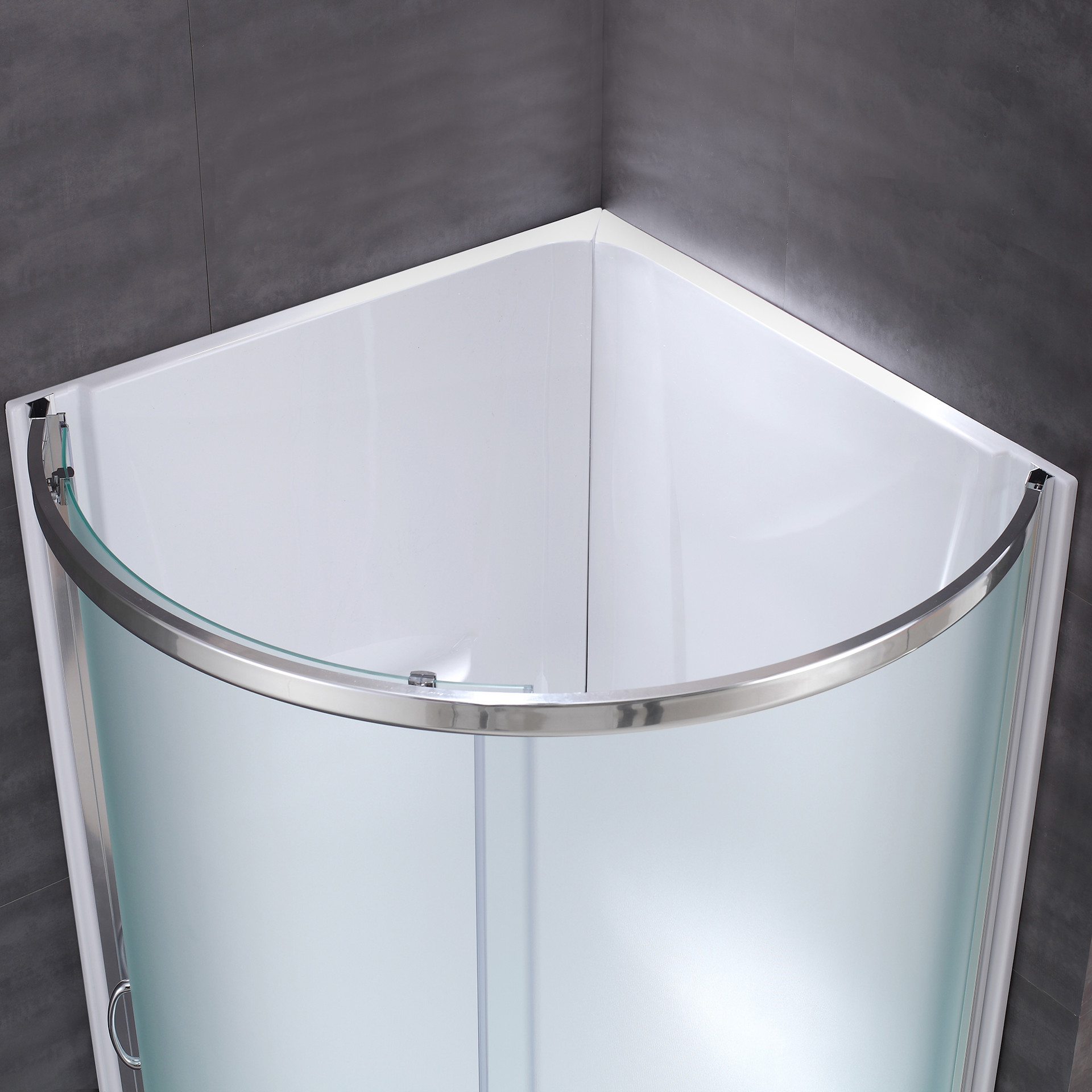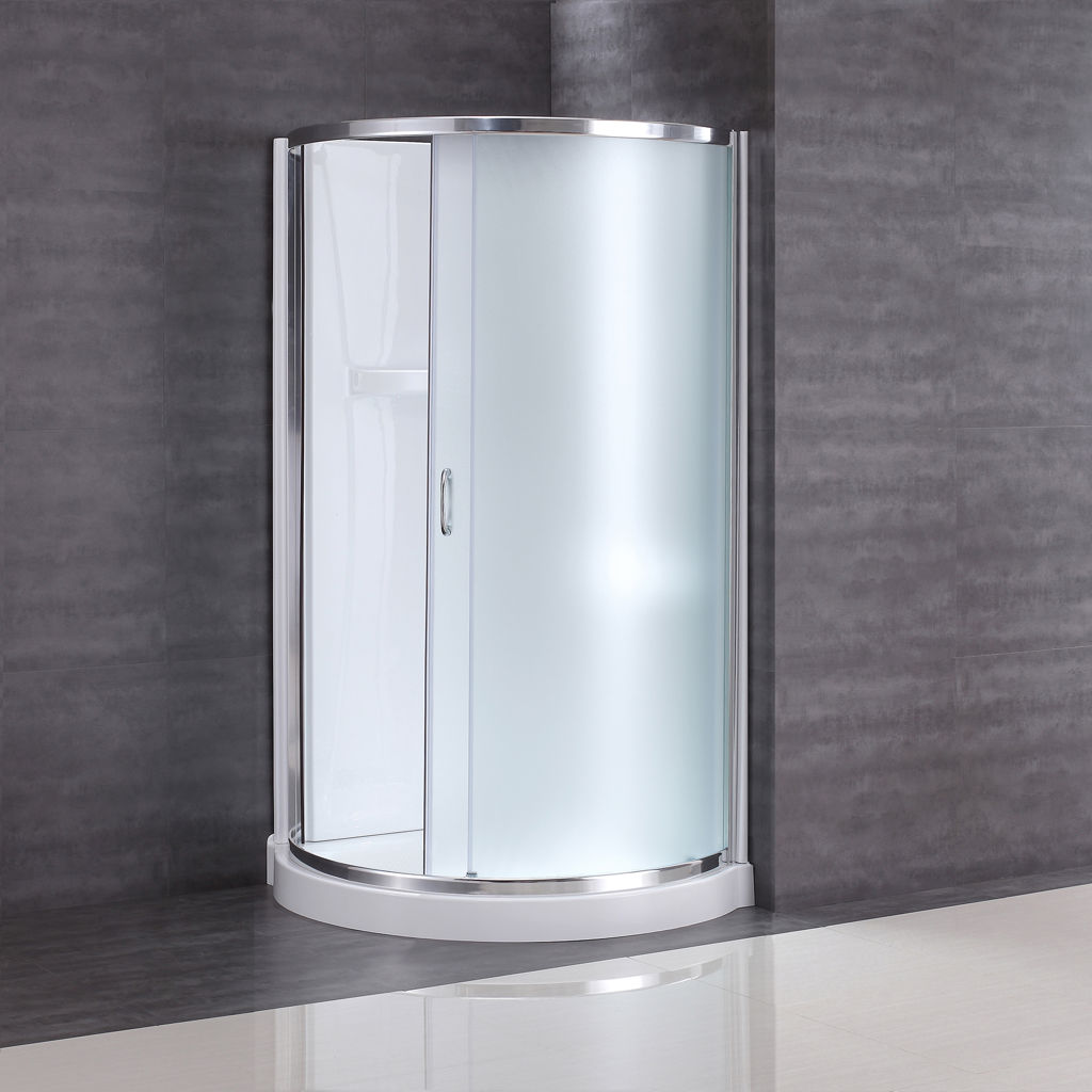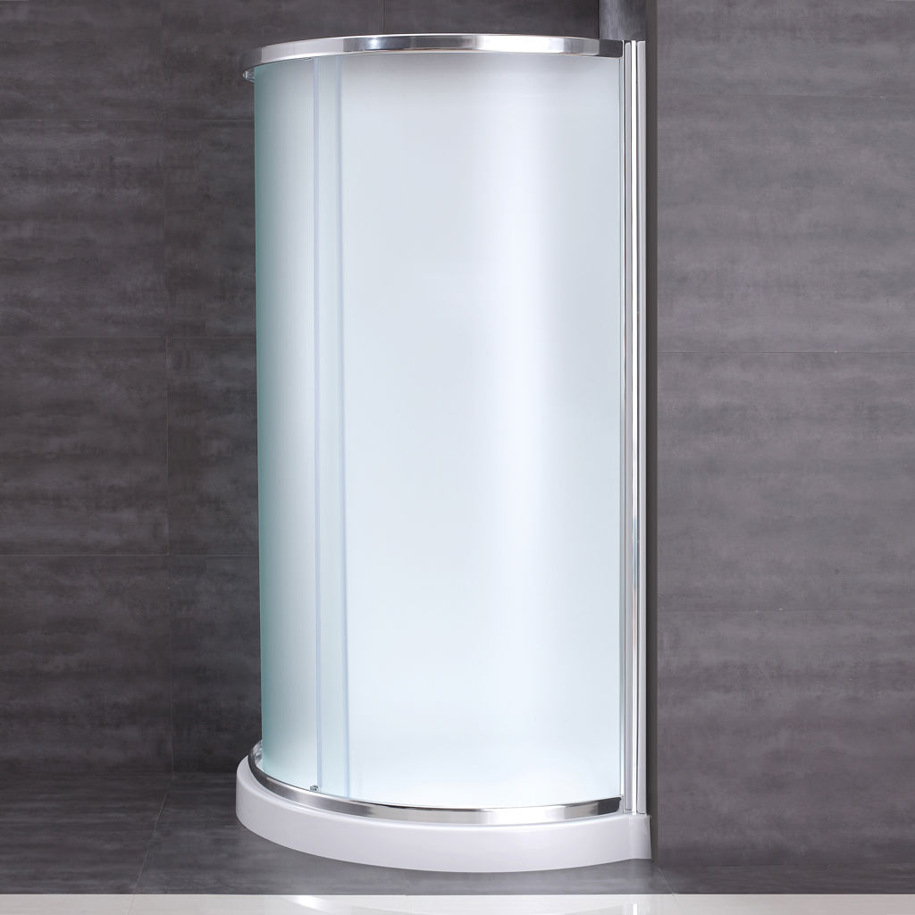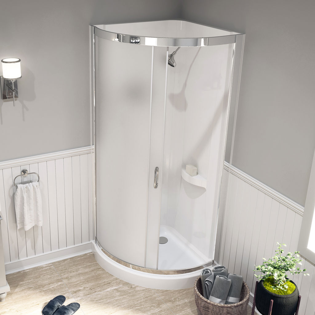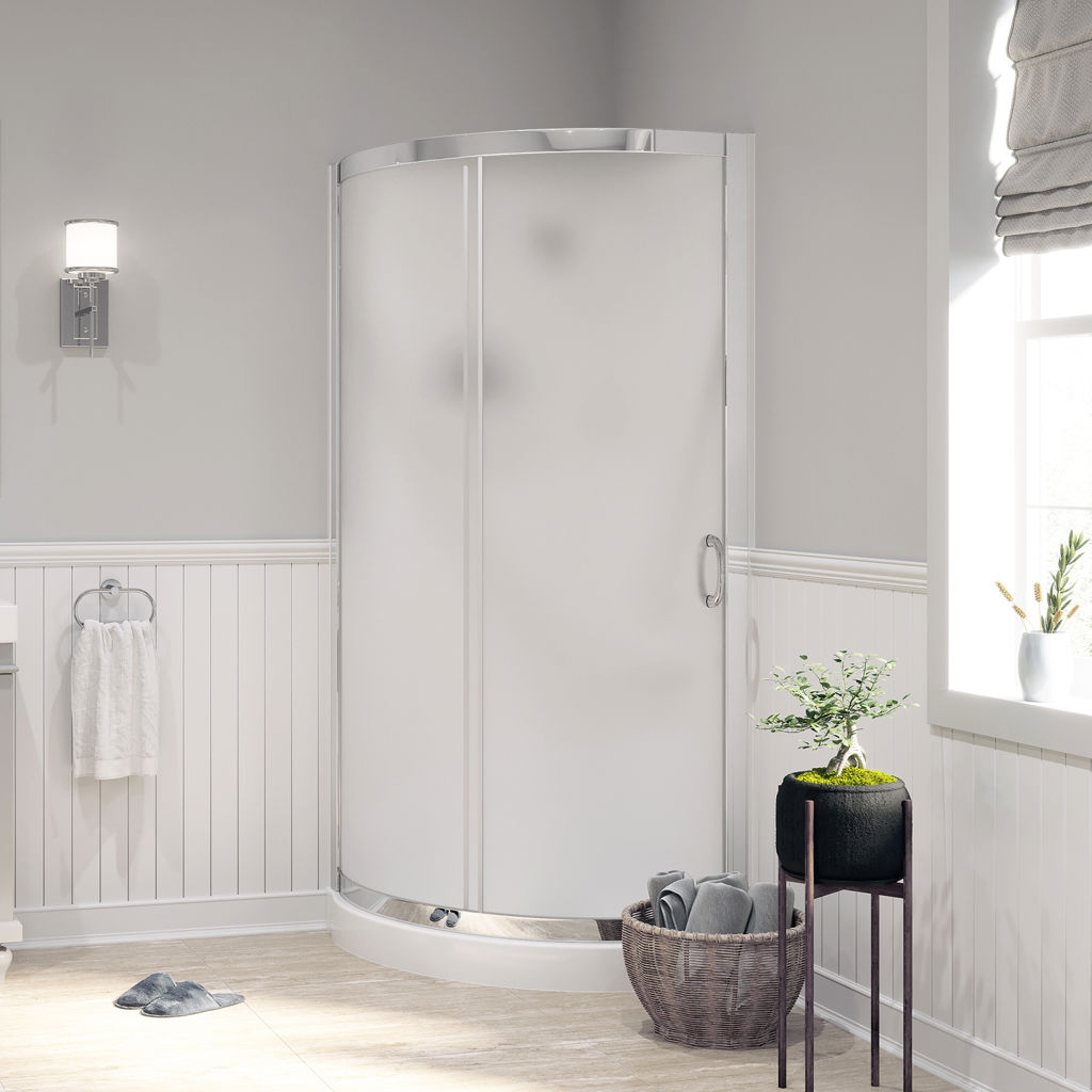 The rounded shape of this framed shower enclosure is perfectly suited for small to medium-sized bathrooms.