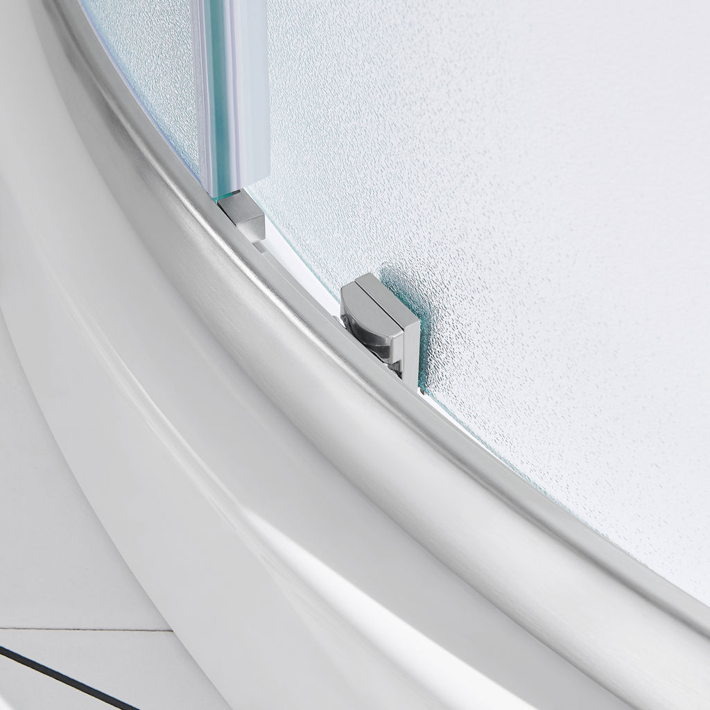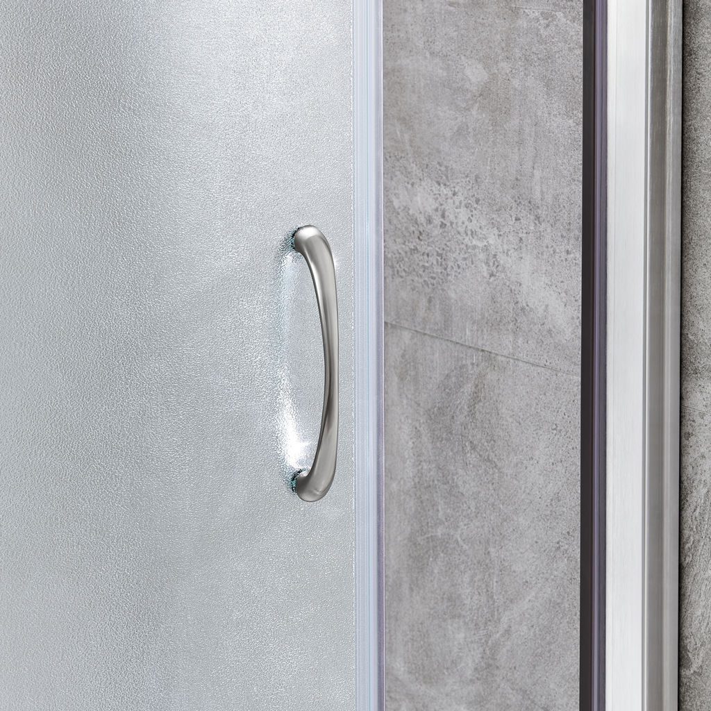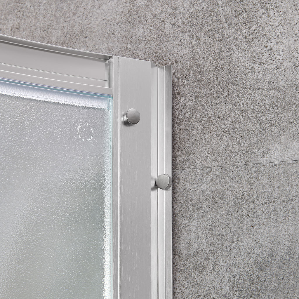 The frosted glass door can be installed on either the left or right side and features built-in adjustment options for easy installation and maintenance.