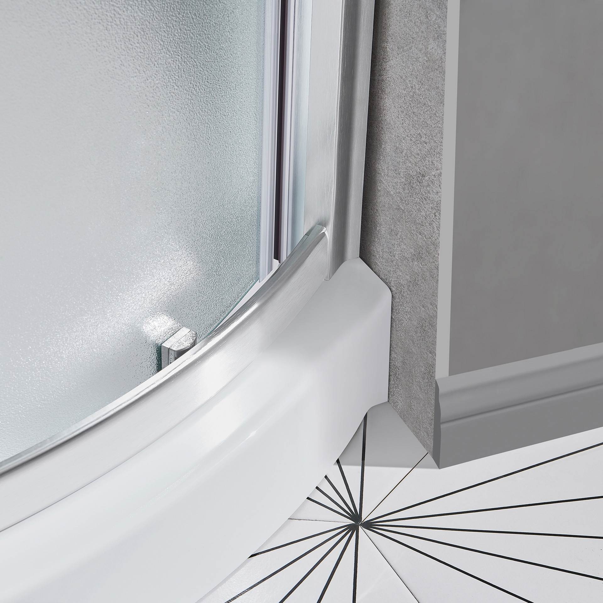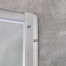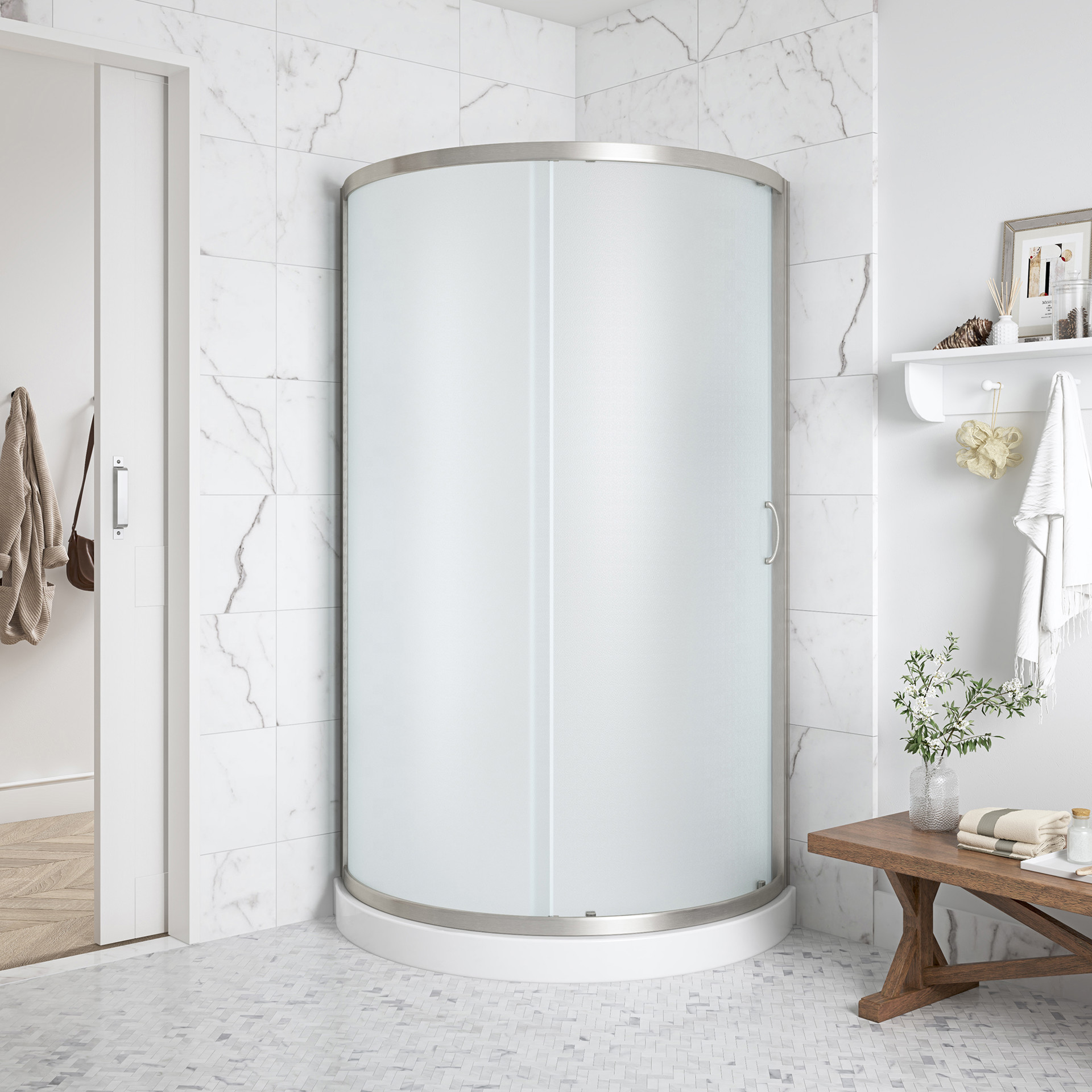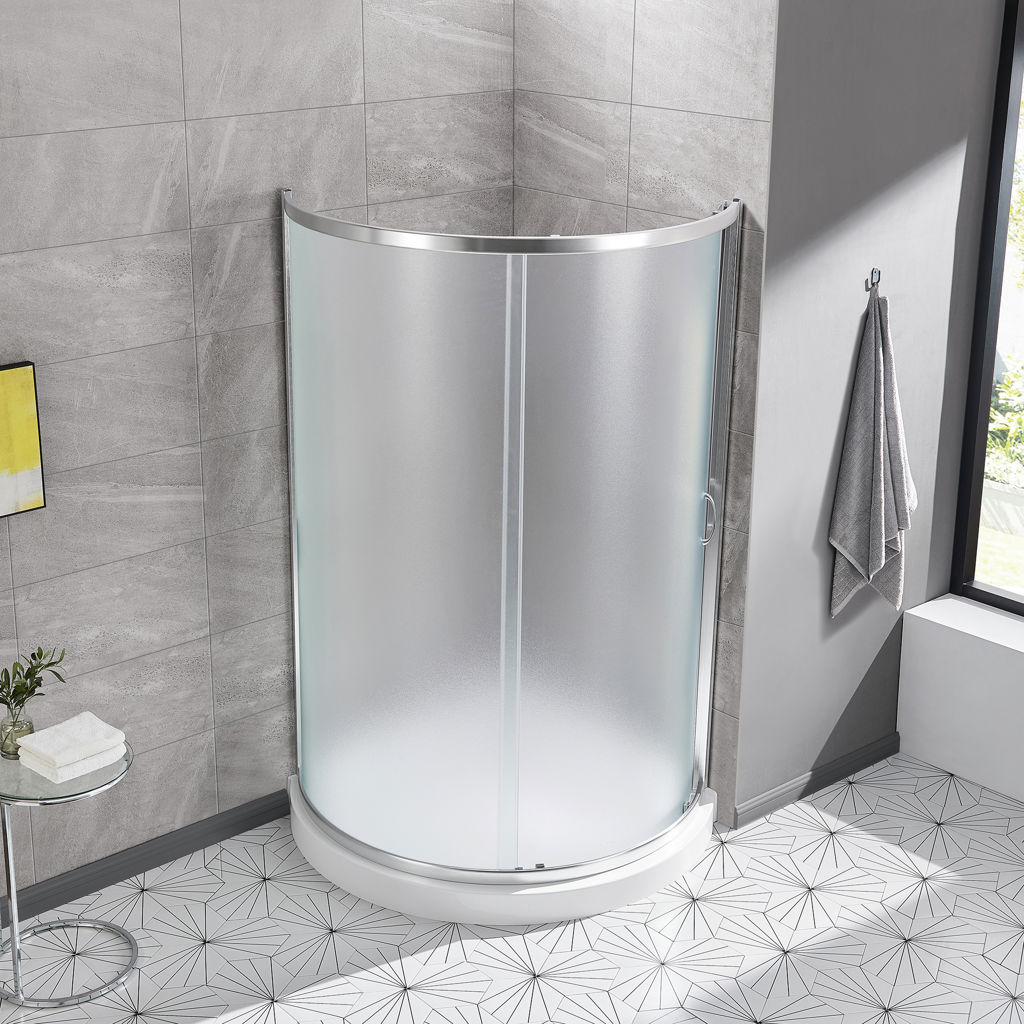 The frosted glass door can be installed on either the left or right side and features built-in adjustment options for easy installation and maintenance.