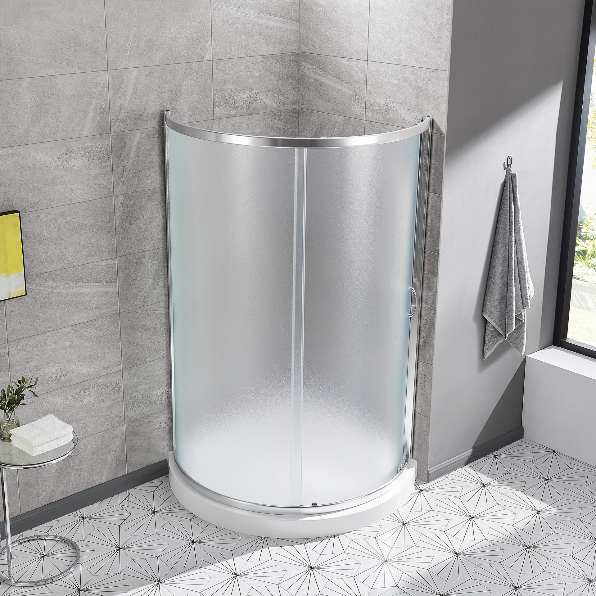 • Two frosted glass panels for added privacy