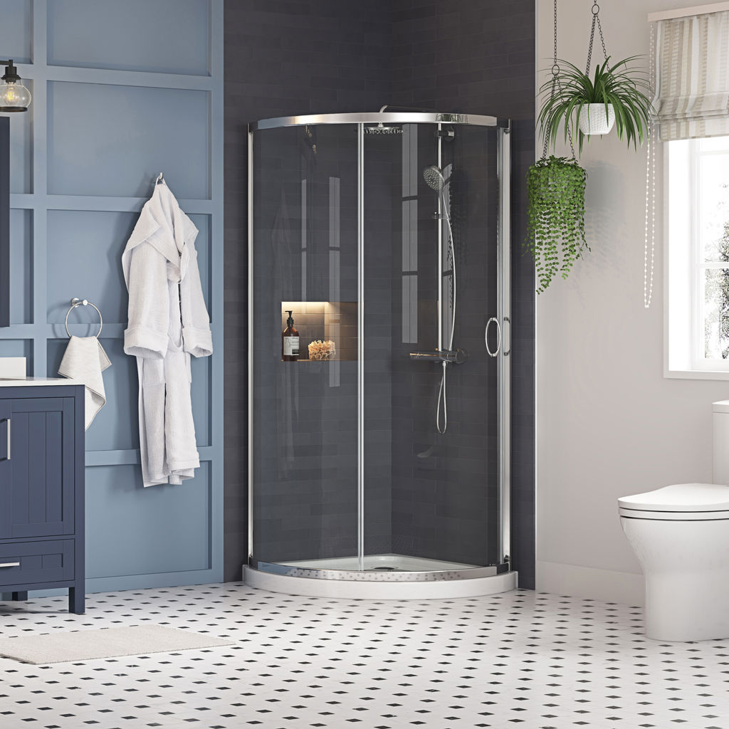 Complete the look of your bathroom with the 32 in. Breeze Corner Sliding Shower Kit by OVE.