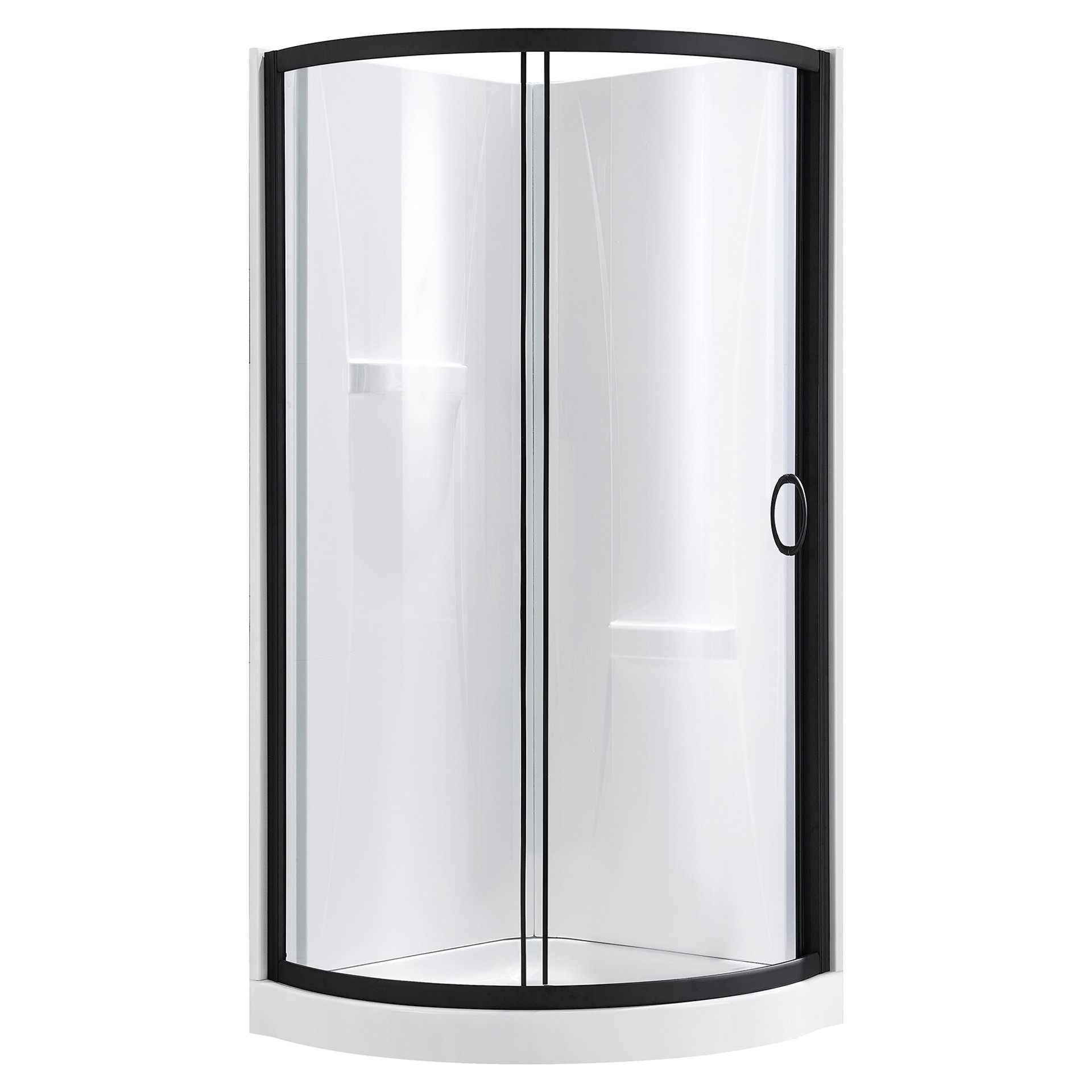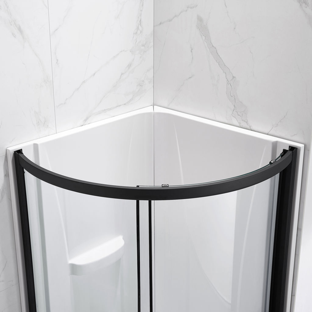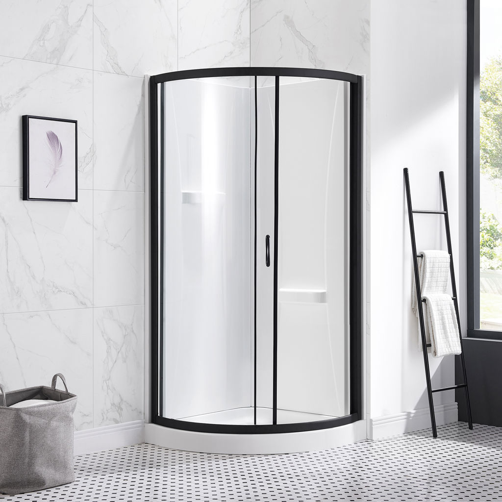 Enjoy the rounded acrylic base, acrylic walls, and high-quality framed sliding door.