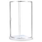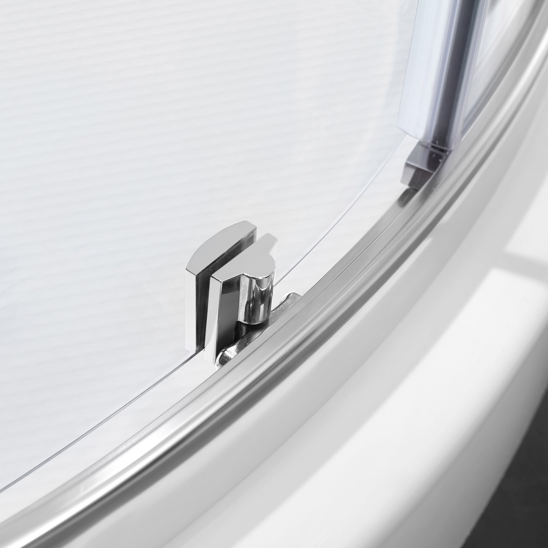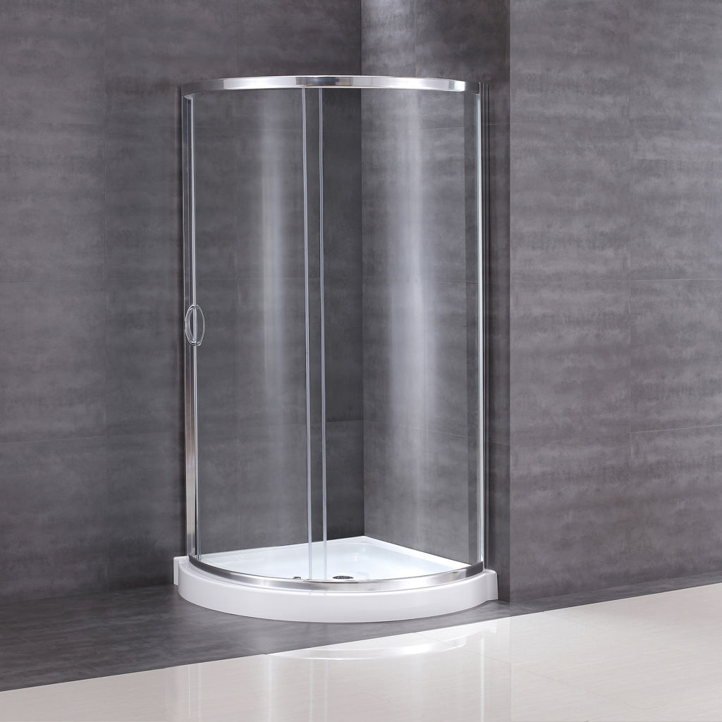 The rounded shape of the framed shower enclosure is perfectly suited for compact and smaller bathrooms.