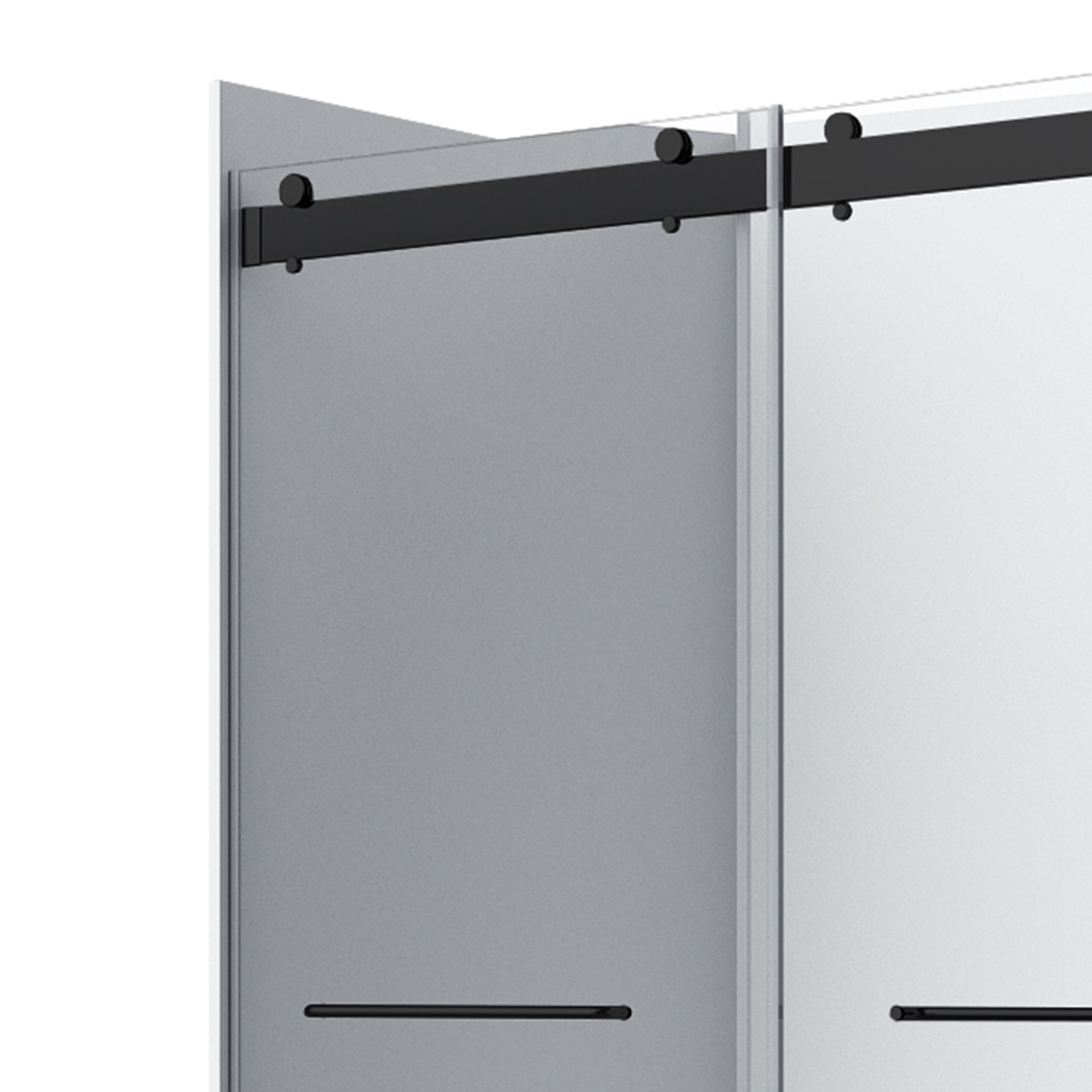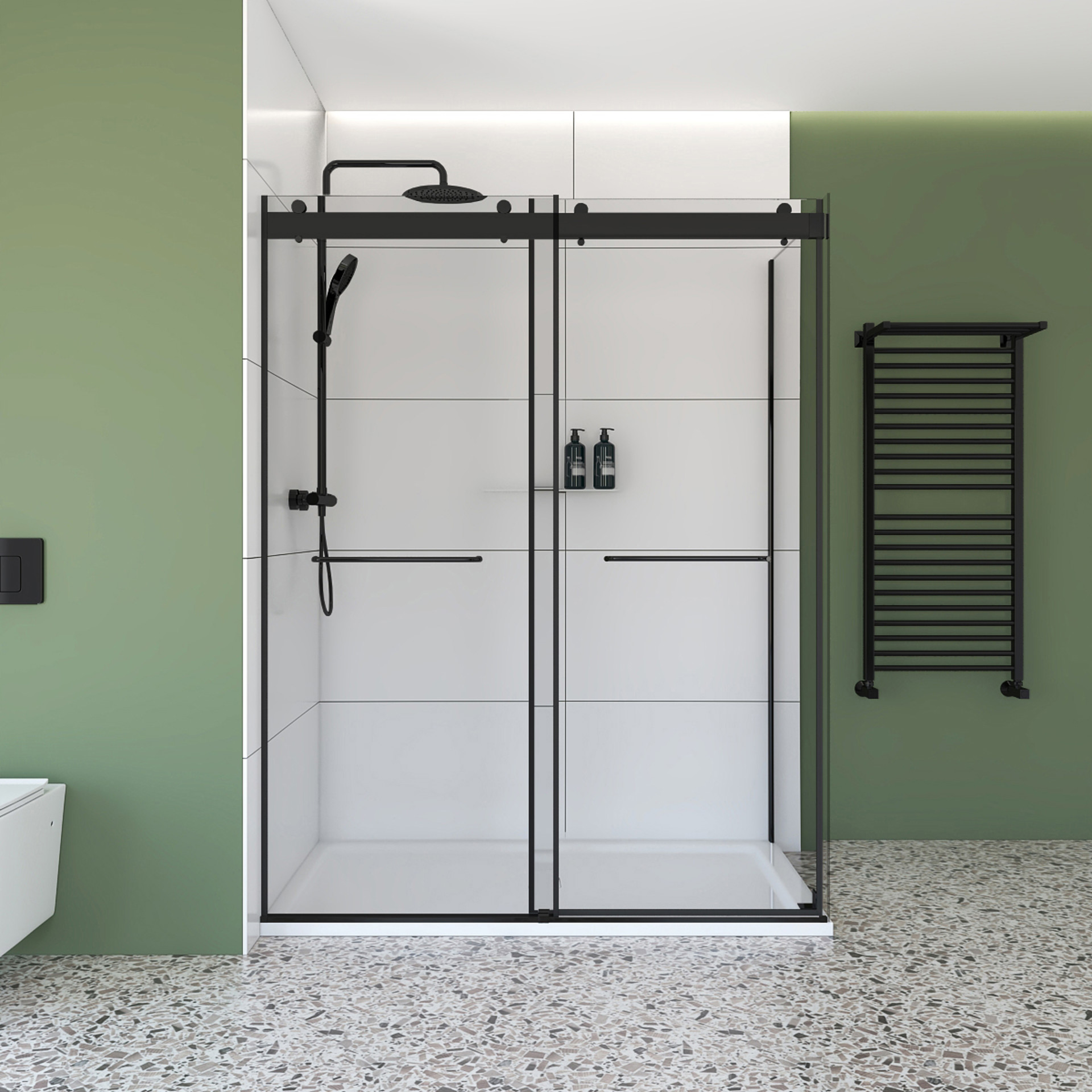 Sleek black handles glide effortlessly, adding a bold, contemporary accent that transforms every entry into quiet luxury.