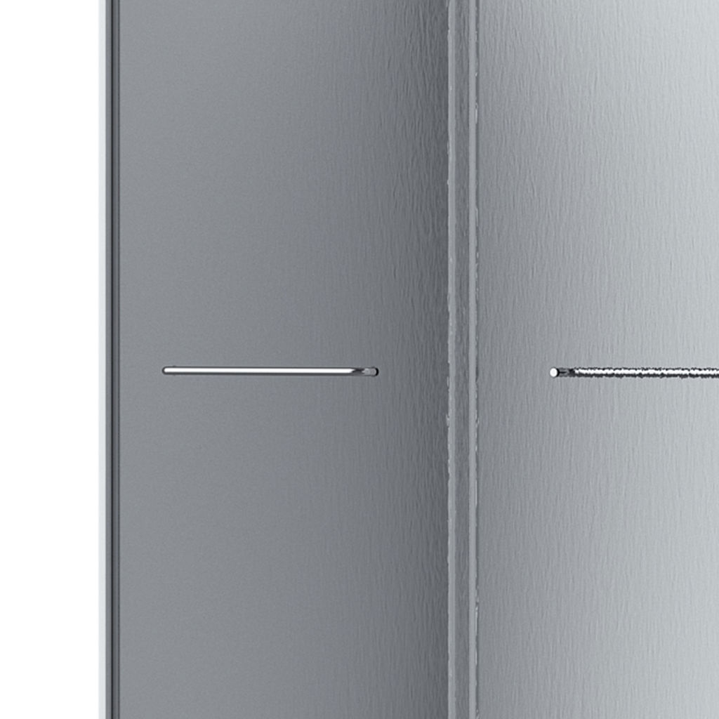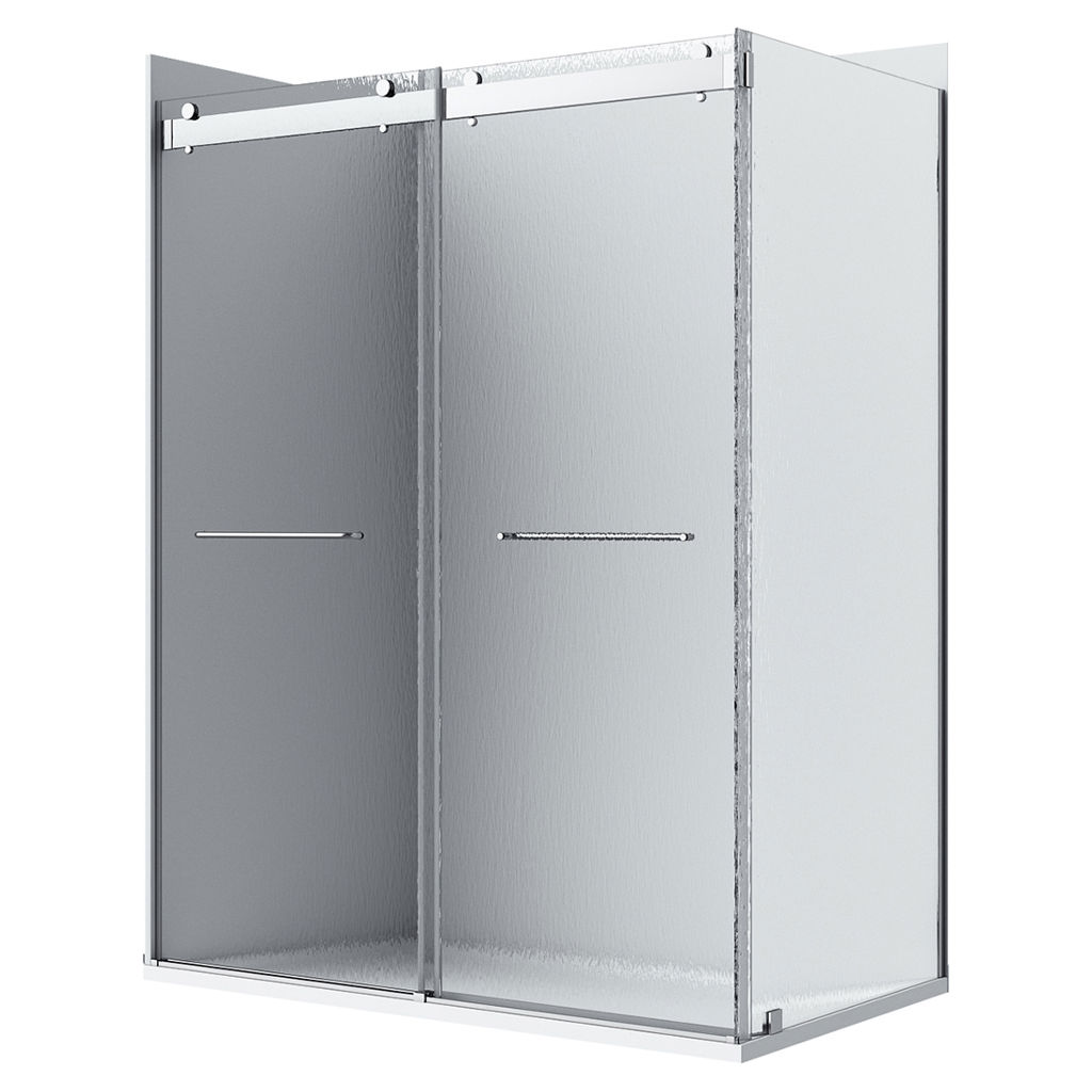 The durable SMC base provides a solid foundation, while the 6 mm rain-textured tempered glass sliding doors add a subtle and elegant visual texture.