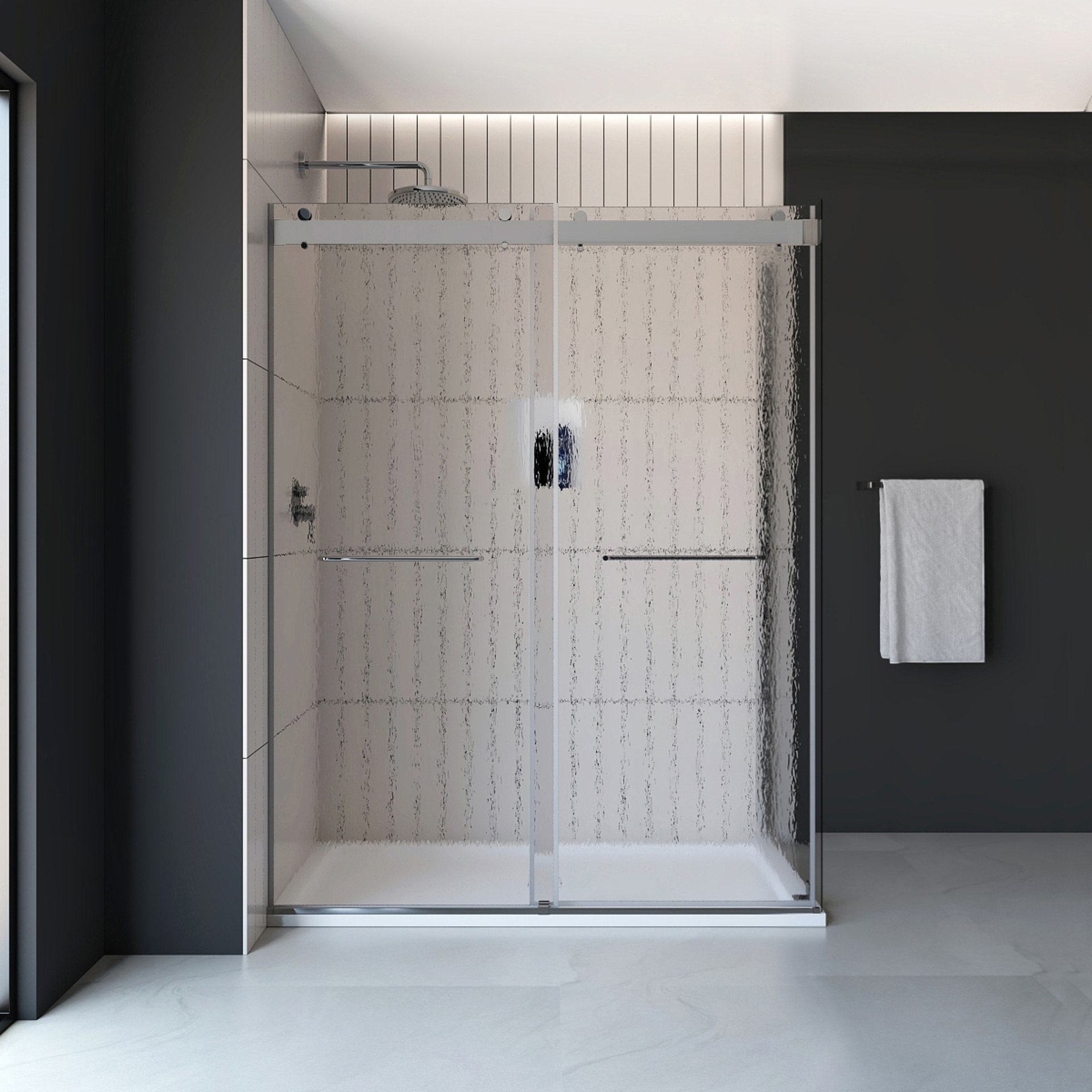 Smooth-gliding chrome handles contribute a clean, contemporary accent, transforming every shower into a moment of understated luxury.